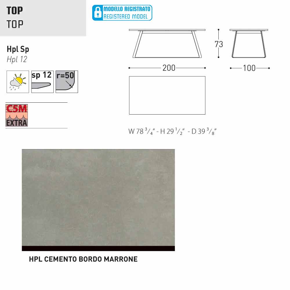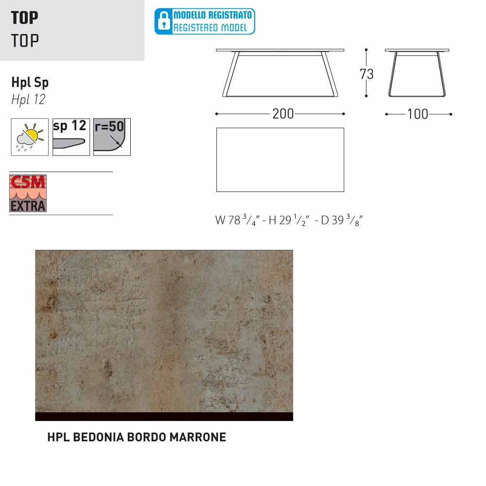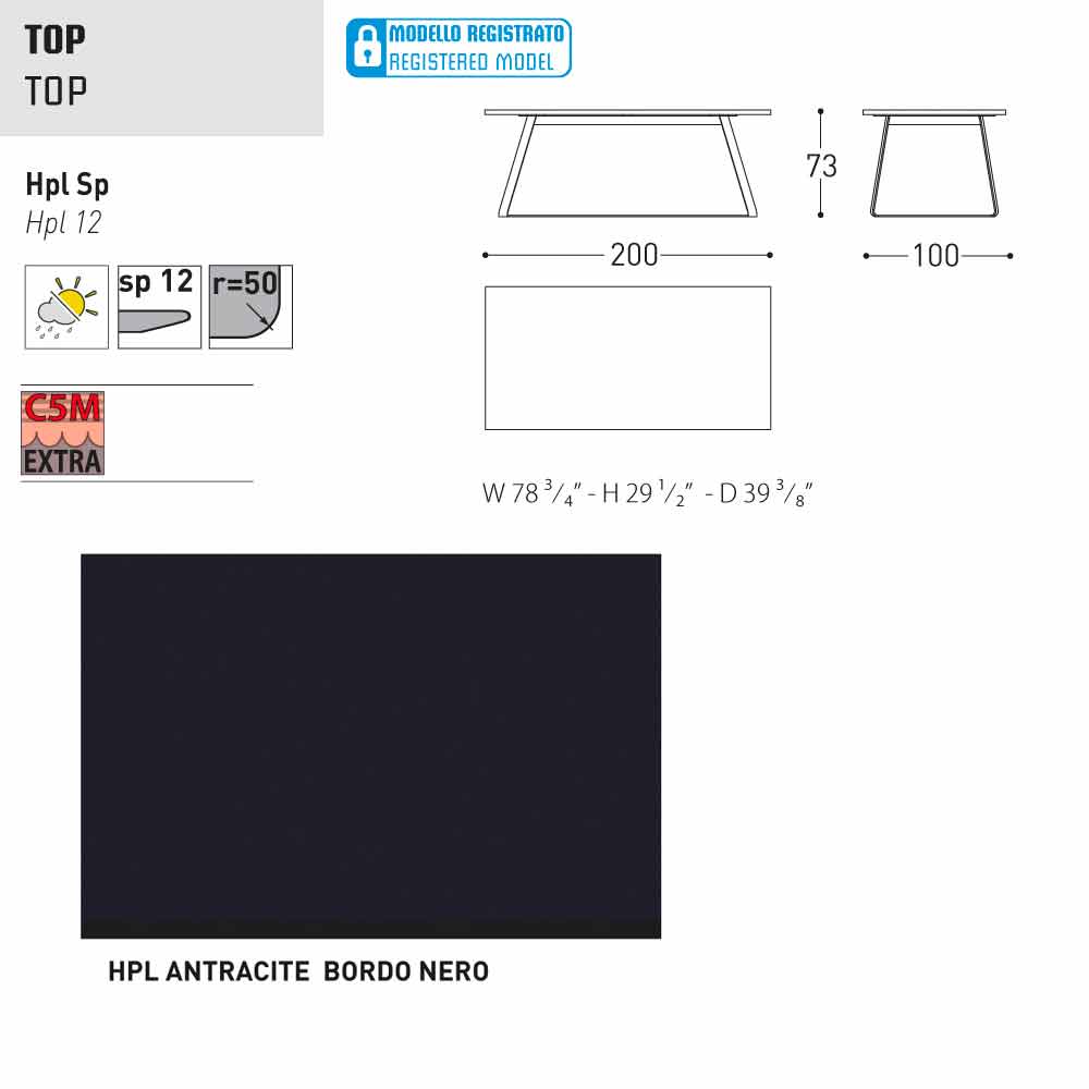 - 200x100x H 73 cm