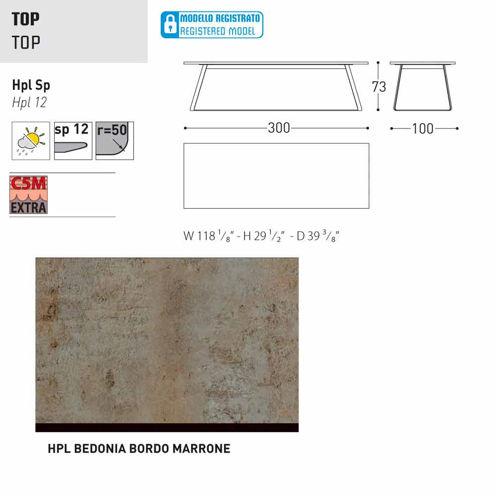 - 300x100x H 73 cm