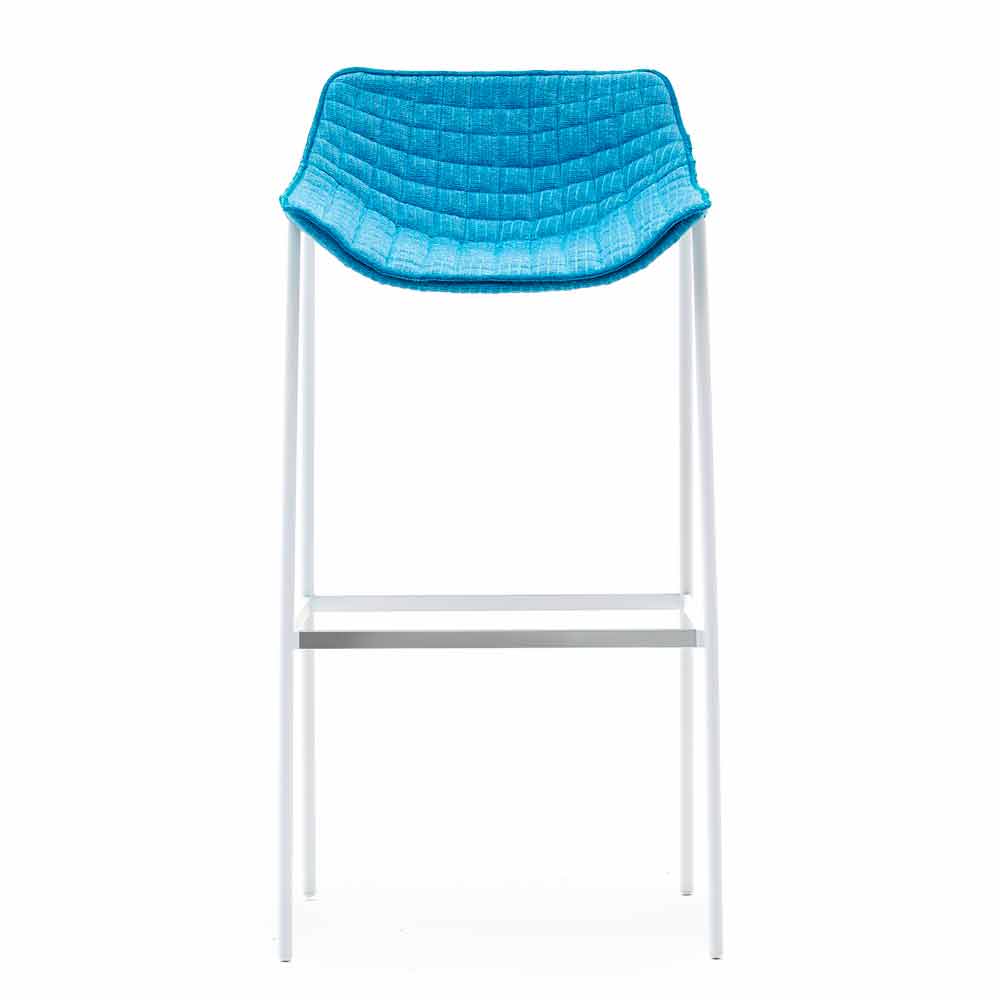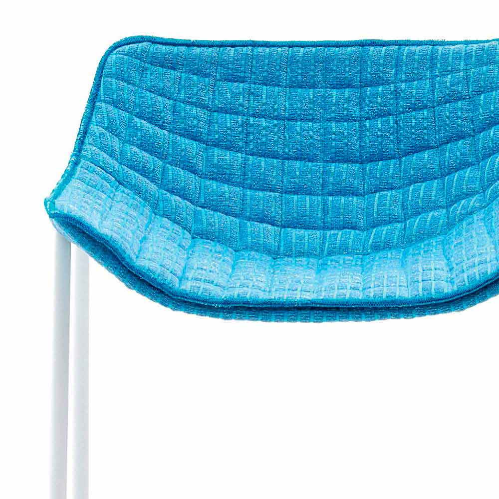 Summer Set is een tuinstoel, gekenmerkt door een dragende structuur in staal met witte poedercoating en een beklede stoffen zitting.