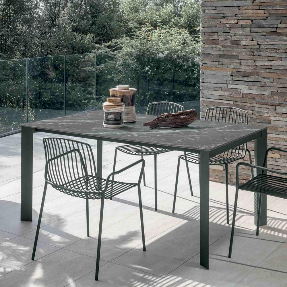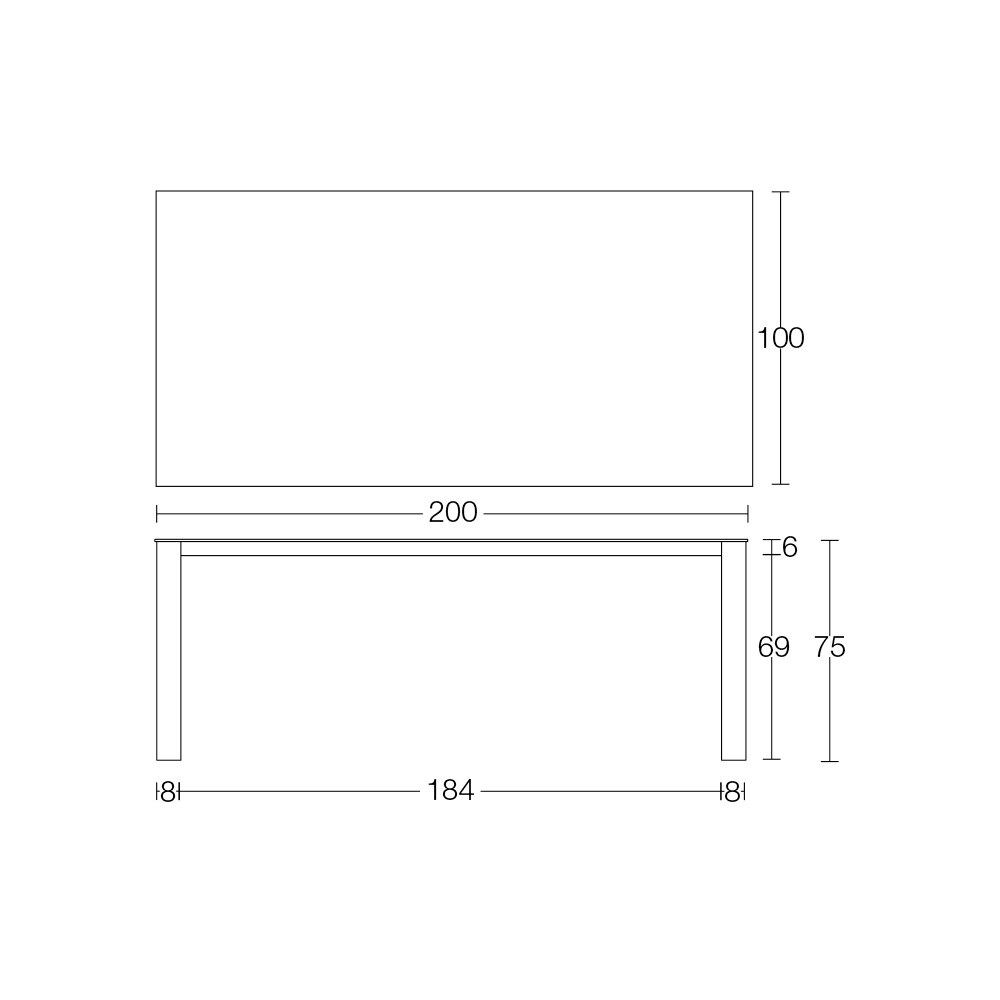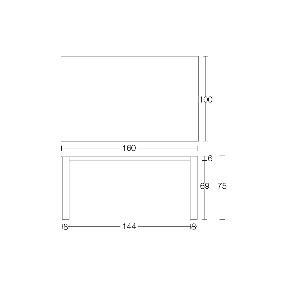 Het dunne maar stevige metalen frame zorgt voor stabiliteit en duurzaamheid, waardoor het ideaal is voor dagelijks gebruik. Perfect voor elke gelegenheid, van familiediners tot bijeenkomsten met vrienden, deze tafel biedt voldoende afmetingen om comfortabel al uw gasten te huisvesten.