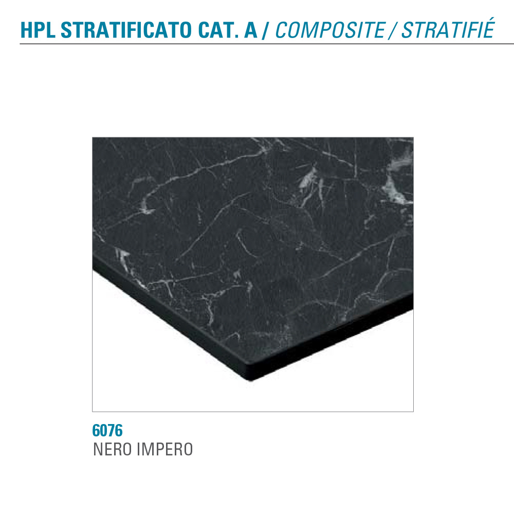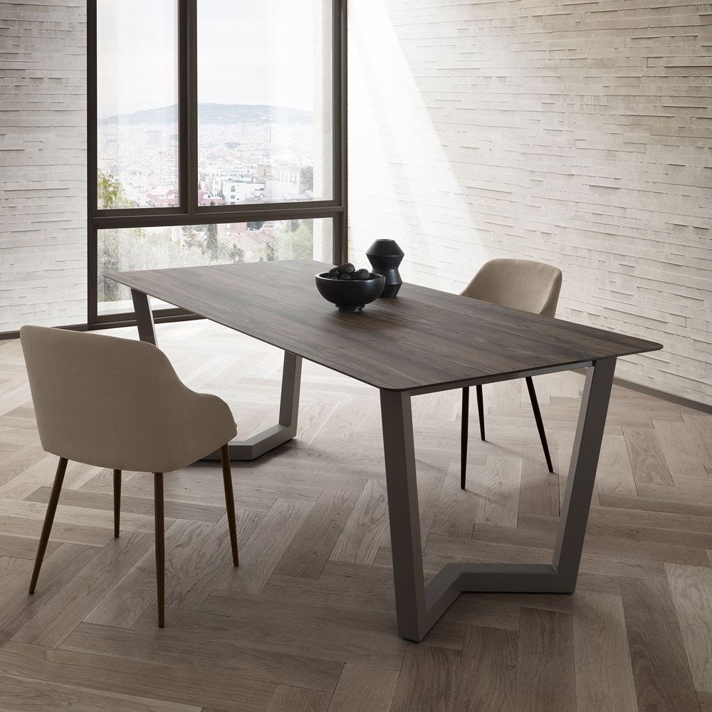 Eettafel met metalen poten en gelaagd HPL blad Made in Italy.