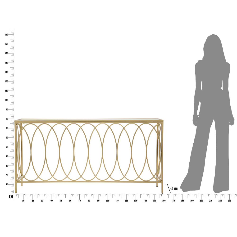Vaste console voor entree of woonkamer met structuur gemaakt van ijzer met gouden afwerking en wit marmer effect glazen blad . Een aanvulling die wordt gekenmerkt door eenvoudige en veelzijdige lijnen en vormen die deze console tot een inrichtingsoplossing maken die geschikt is voor elke moderne stilistische situatie. Zijn eigenaardigheid is de prachtige geometrische textuur die de hele structuur van het product kenmerkt, waardoor de waarde en uniciteit toenemen, samen met het verfijnde blad met marmereffect dat de verfijnde esthetiek onderstreept.