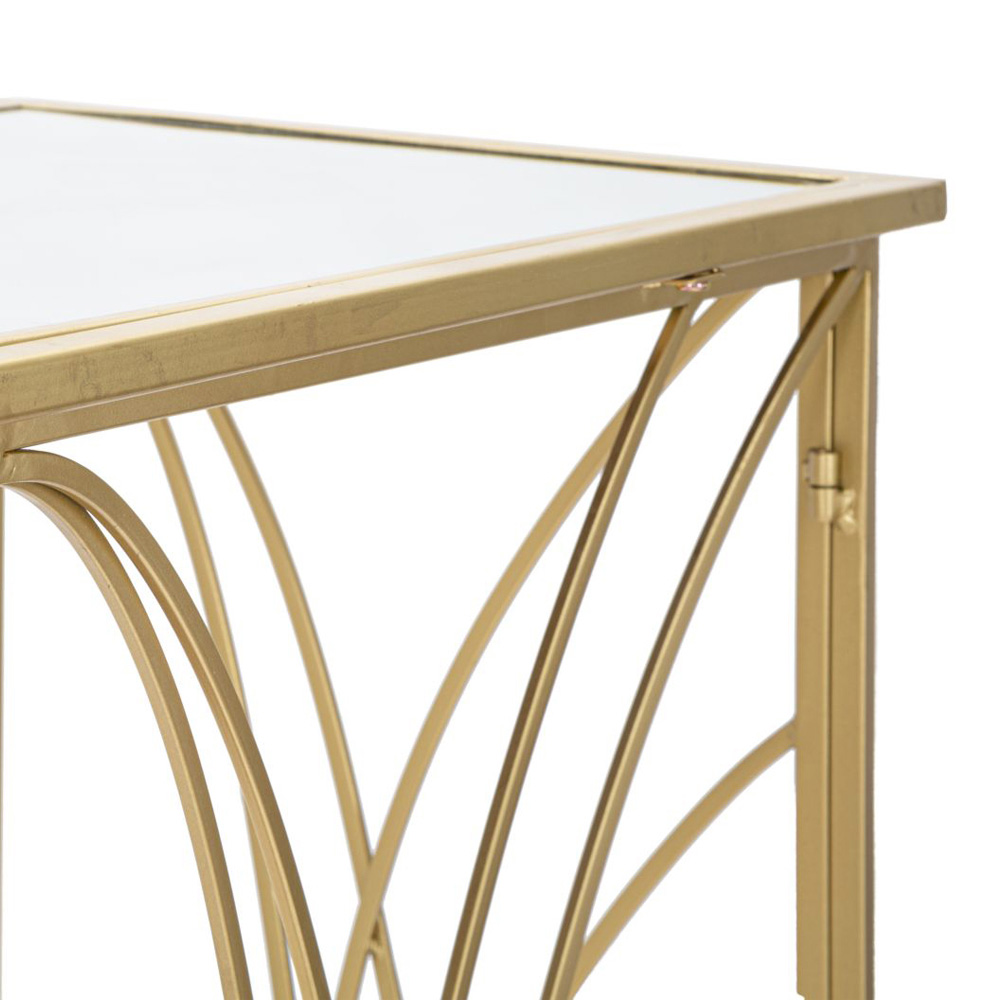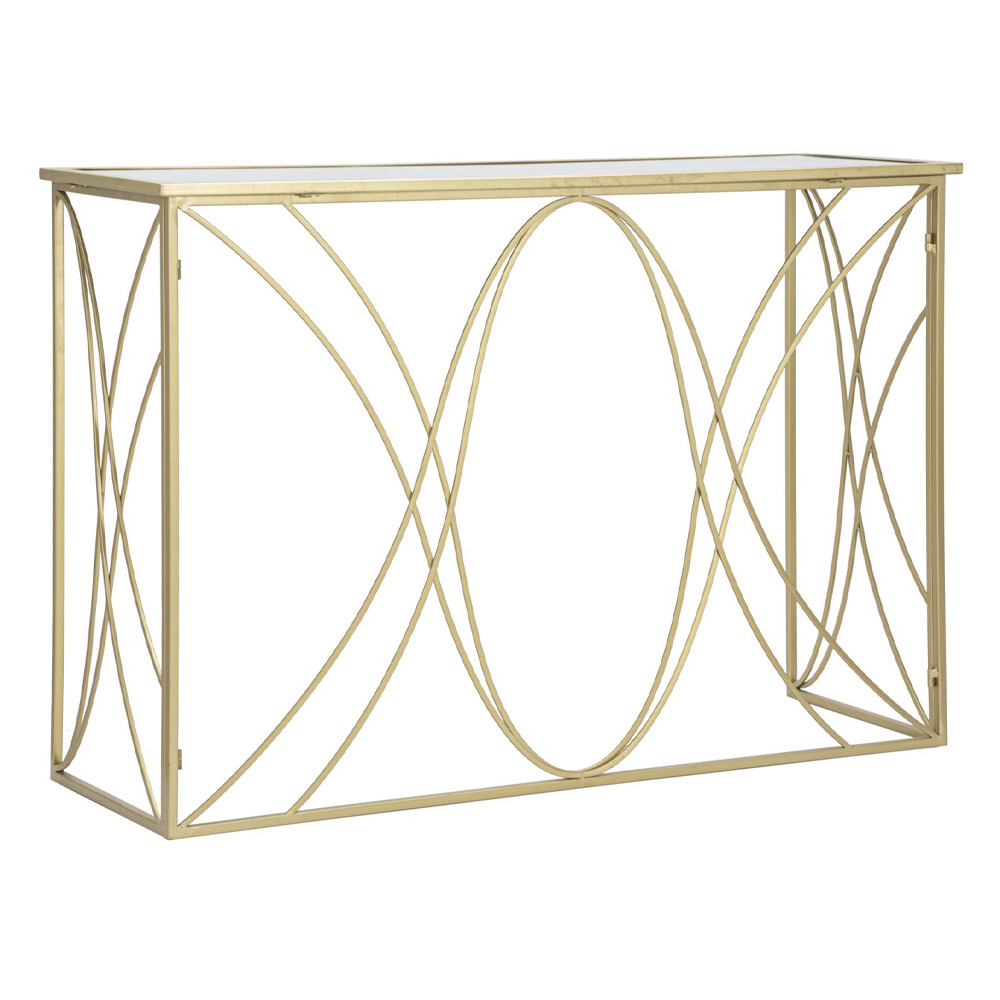 Moderne console in ijzer met gouden afwerking met spiegelblad