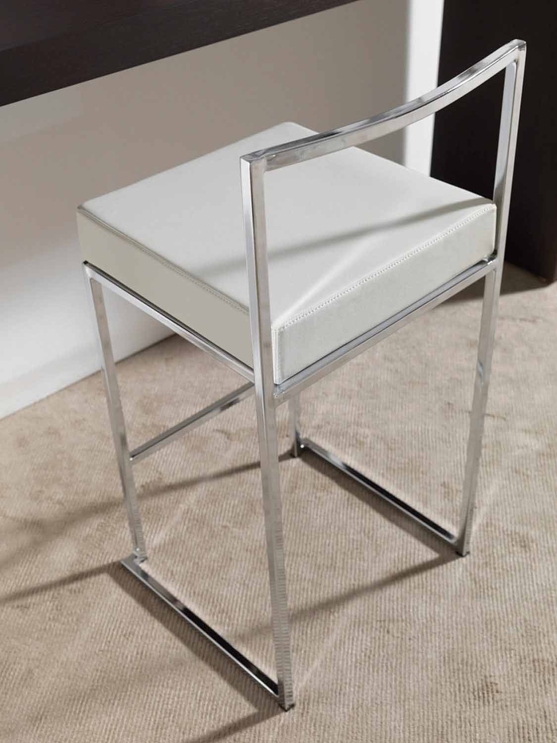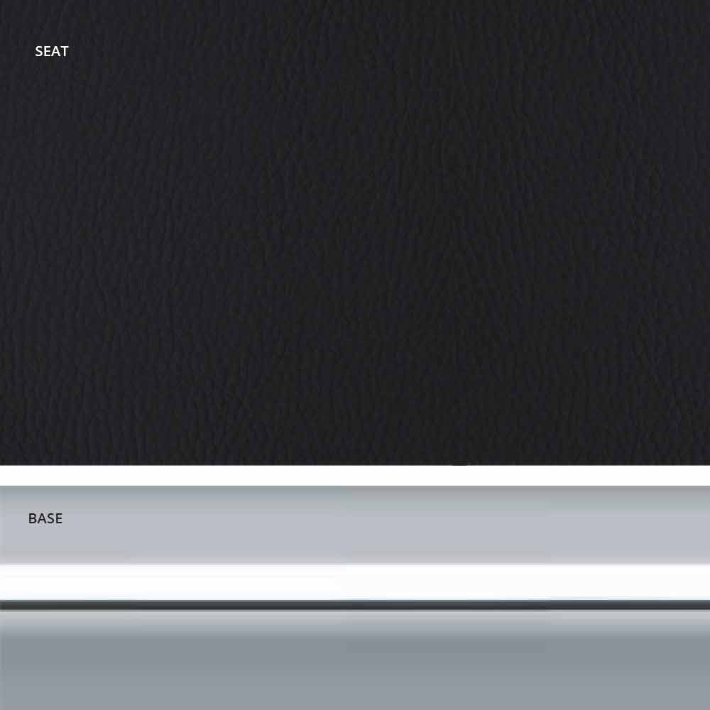 De structuur is gemaakt van verchroomd staal terwijl de zitting is gemaakt van eco-leer.