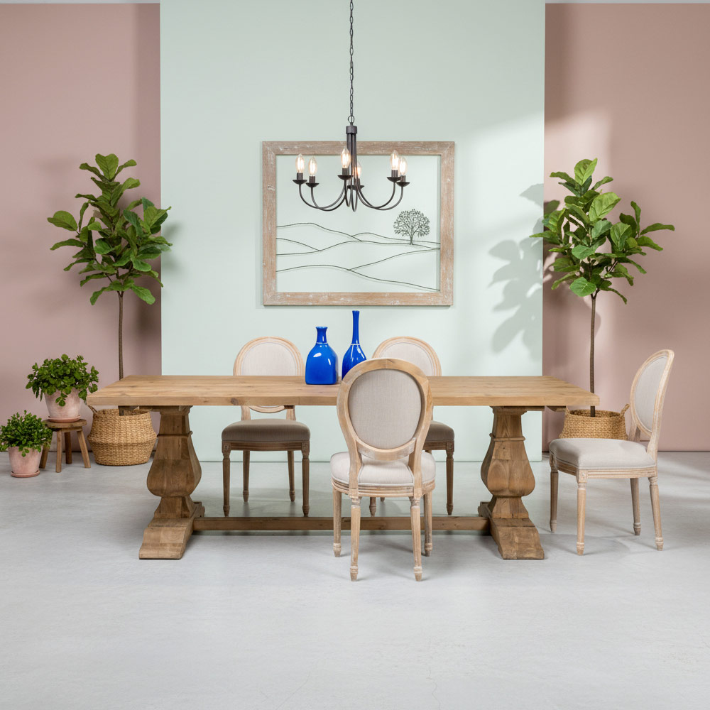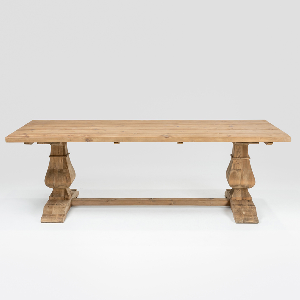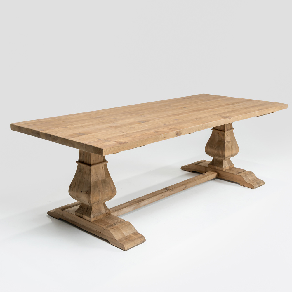 Deze natuurlijk verouderde grenen tafel heeft een authentieke en tijdloze charme en is ideaal om grote ruimtes zoals eetkamers of woonkamers te verfraaien. De verouderde afwerking benadrukt de textuur van het hout en accentueert de nerven, knoesten en imperfecties die elke tafel uniek maken.