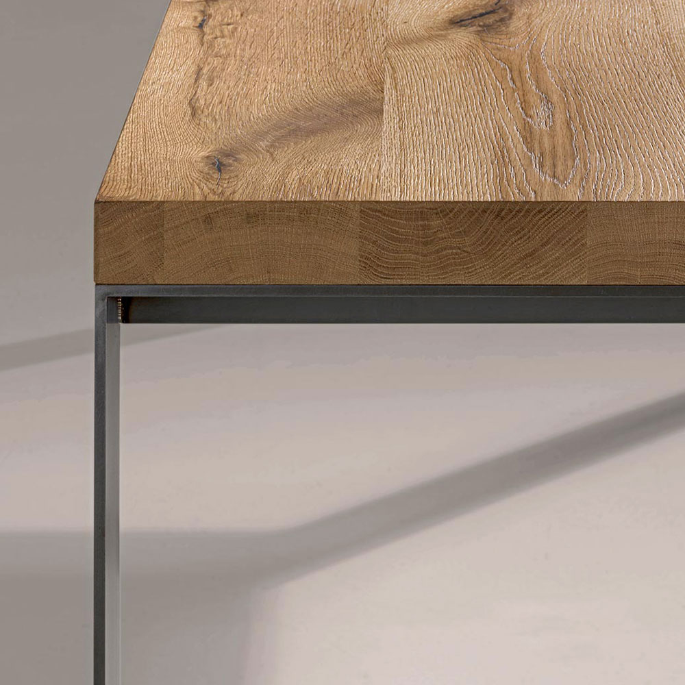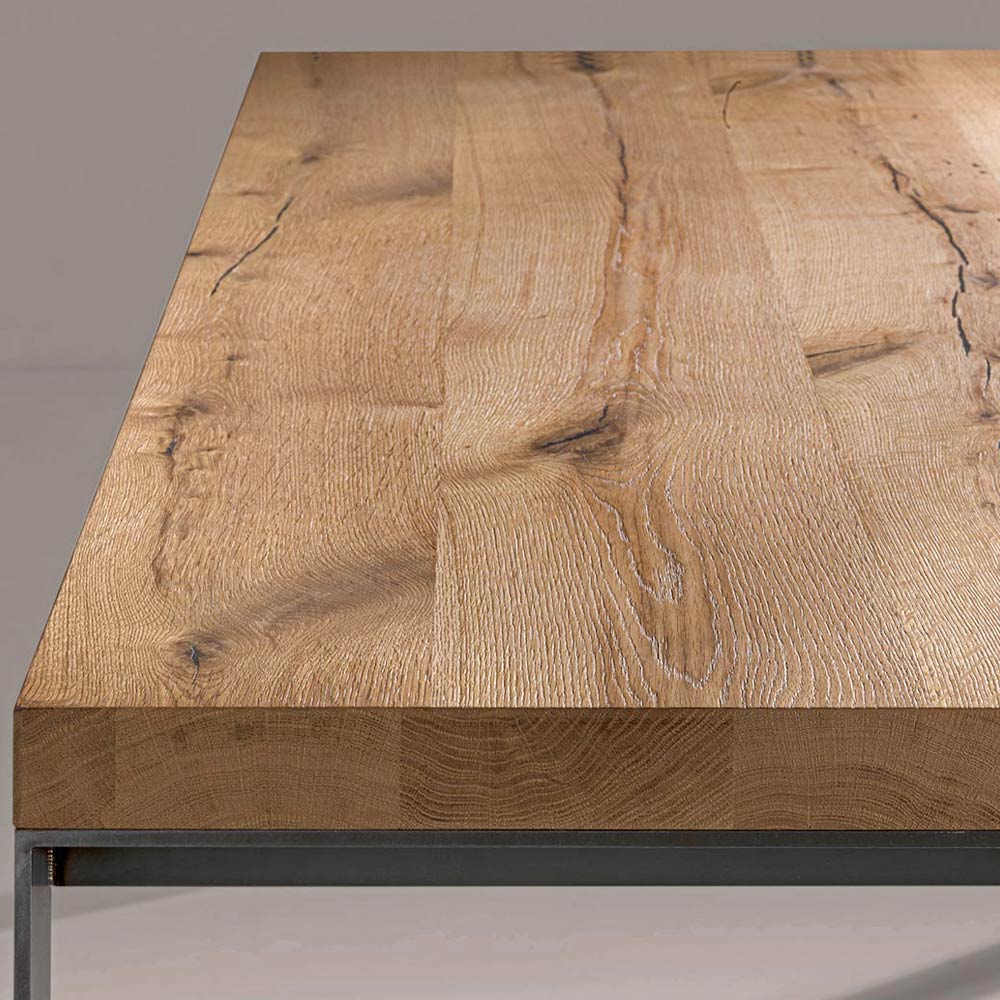 Vaste tafel met metalen poten en natuurlijk eiken blad Made in Italy.