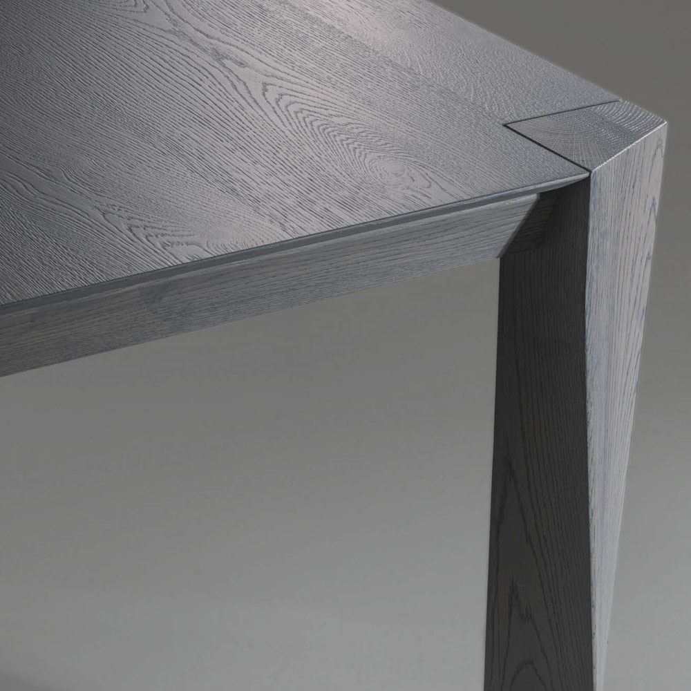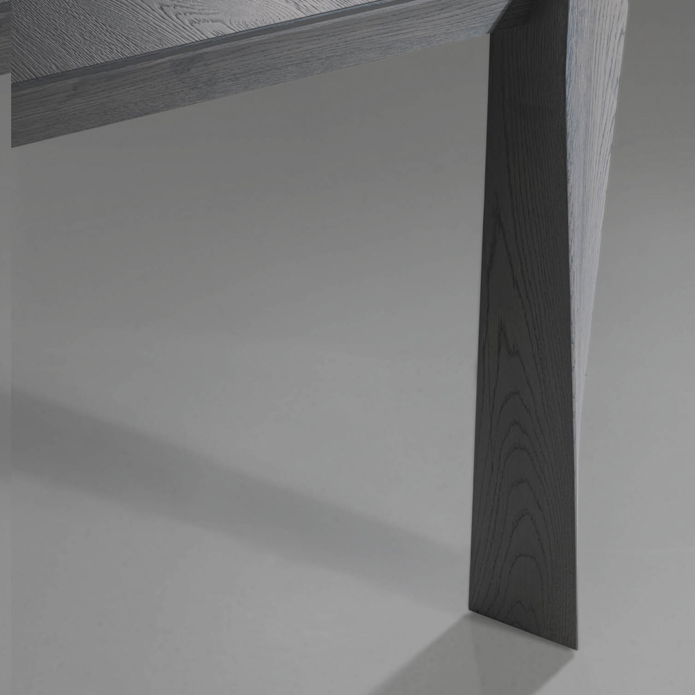 De tafel wordt gevormd door futuristische vormen, die de essentie licht geven en onderscheidende lijnen en perspectieven geven. De robuustheid van de materialen vertaalt zich in een creatieve impuls gesmeed door bekwame Italiaanse handen, waardoor nieuwe kwalitatieve en esthetische doelen worden bereikt. Meubels worden een middel om de ideale persoonlijke ruimte te realiseren.