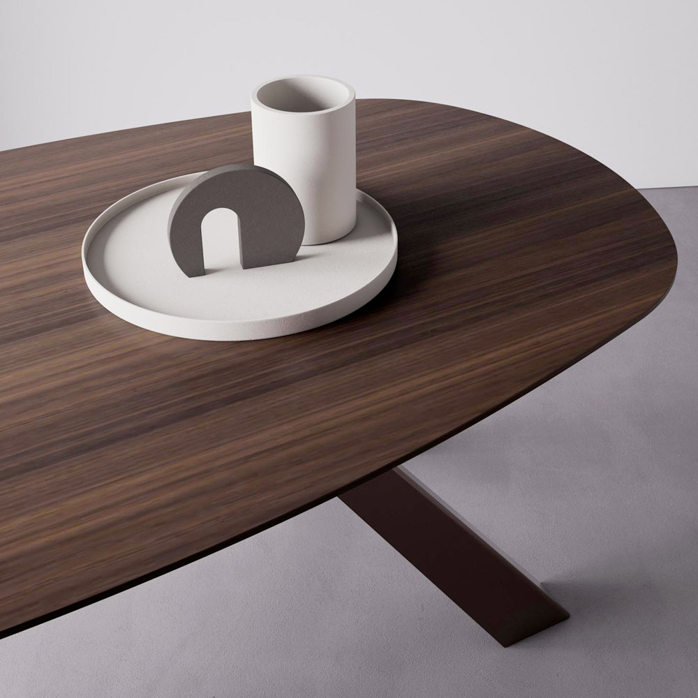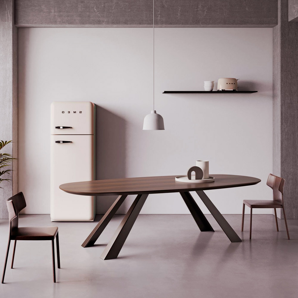 Vaste tafel met elliptisch blad en afgeschuinde rand Made in Italy.