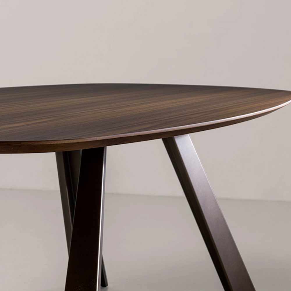 De tafel wordt gevormd door futuristische vormen, die de essentie licht geven en onderscheidende lijnen en perspectieven geven. De robuustheid van de materialen vertaalt zich in een creatieve impuls gesmeed door bekwame Italiaanse handen, waardoor nieuwe kwalitatieve en esthetische doelen worden bereikt. Meubels worden een middel om de ideale persoonlijke ruimte te realiseren.
