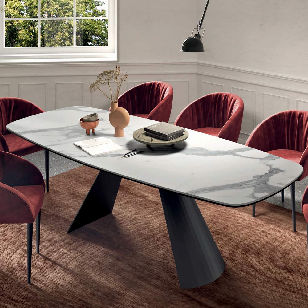 uitstekende kwaliteit Made in Italy . Dankzij de vorm van het onderstel en de beschikbare afwerkingen is deze tafel de