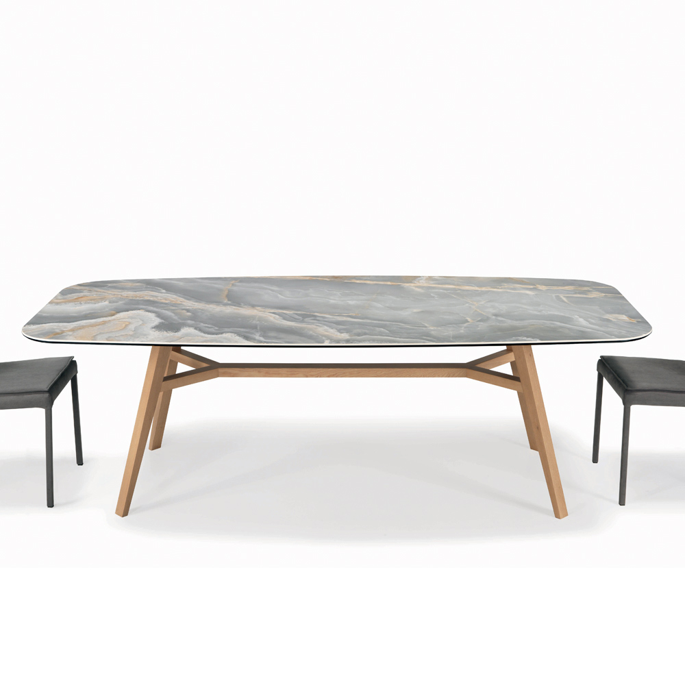 Vaste tafel in hout en keramiek Made in Italy