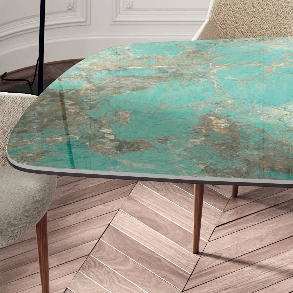 - gepolijst amazoniet (dikte 10 mm glas + 6 mm keramiek)