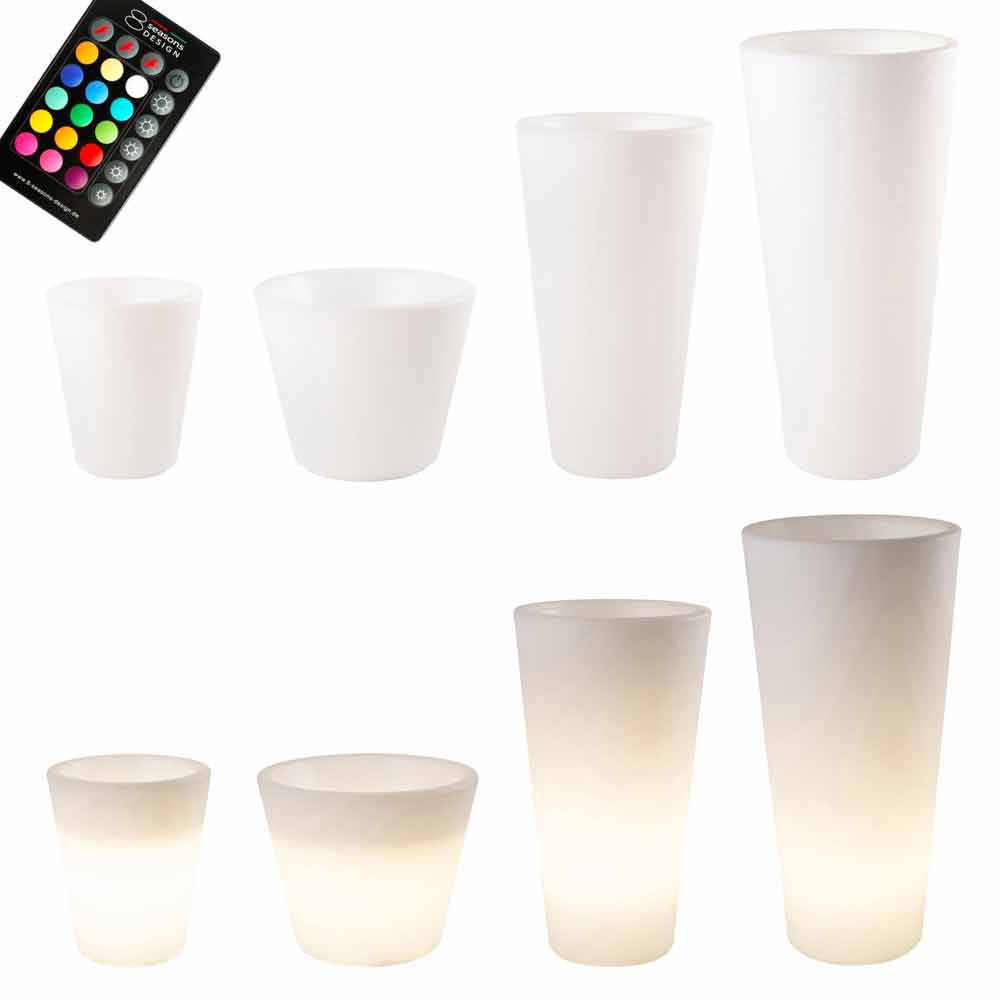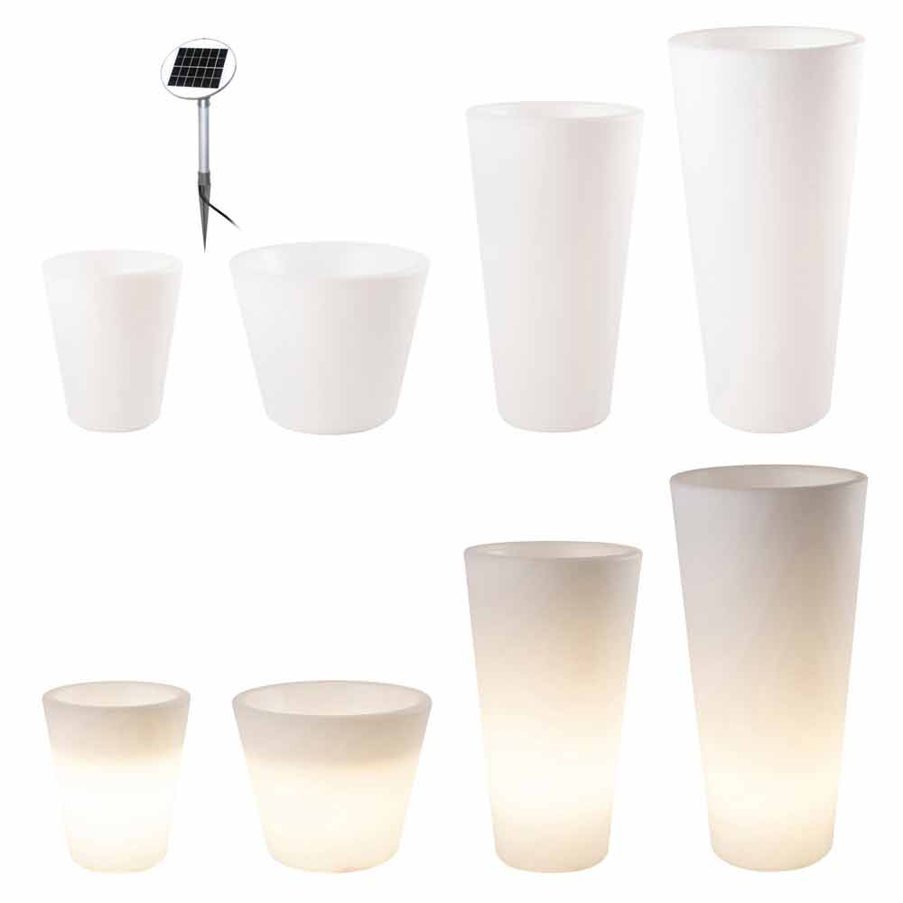 Wit en modern design lichtgevende vaas voor binnen of buiten met led of solar in verschillende maten.