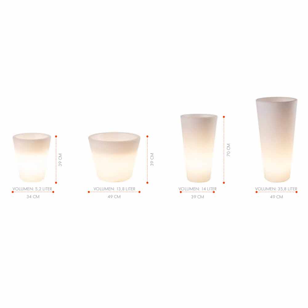 lichtgevende vaas, verkrijgbaar in verschillende maten en kleuren, draagt bij aan een