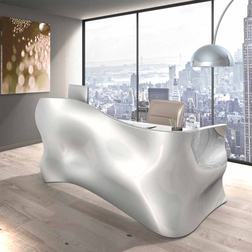 Het bureau "Velo" is ontworpen om functionaliteit en een sterke esthetische impact te combineren. Het wordt gekenmerkt door een ontwerp met organische en golvende lijnen, bijna als een zachte sluier, die de omringende ruimte vouwt en omhult. De sculpturale vorm is zodanig dat hij zowel in moderne en minimalistische omgevingen als in luxueuze kamers van het hoogste niveau kan worden geplaatst. Bureau gekenmerkt door Solid Surface, verkrijgbaar in drie kleurvarianten: Wit (RAL9003), Zwart (RAL9005), Duifgrijs (RAL1019), kies degene die het beste bij u past!