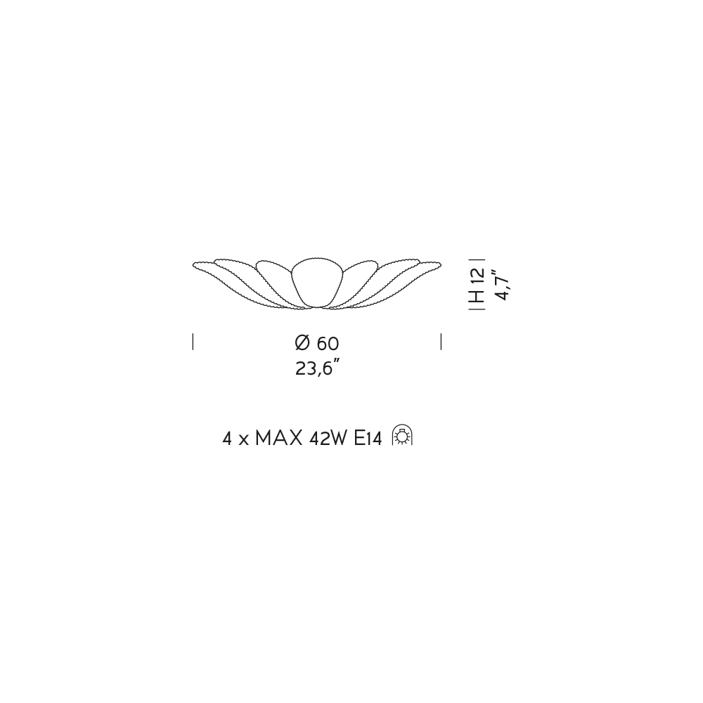 Beschikbare maten:- diameter 60 x H 12 cm (4 lampen);