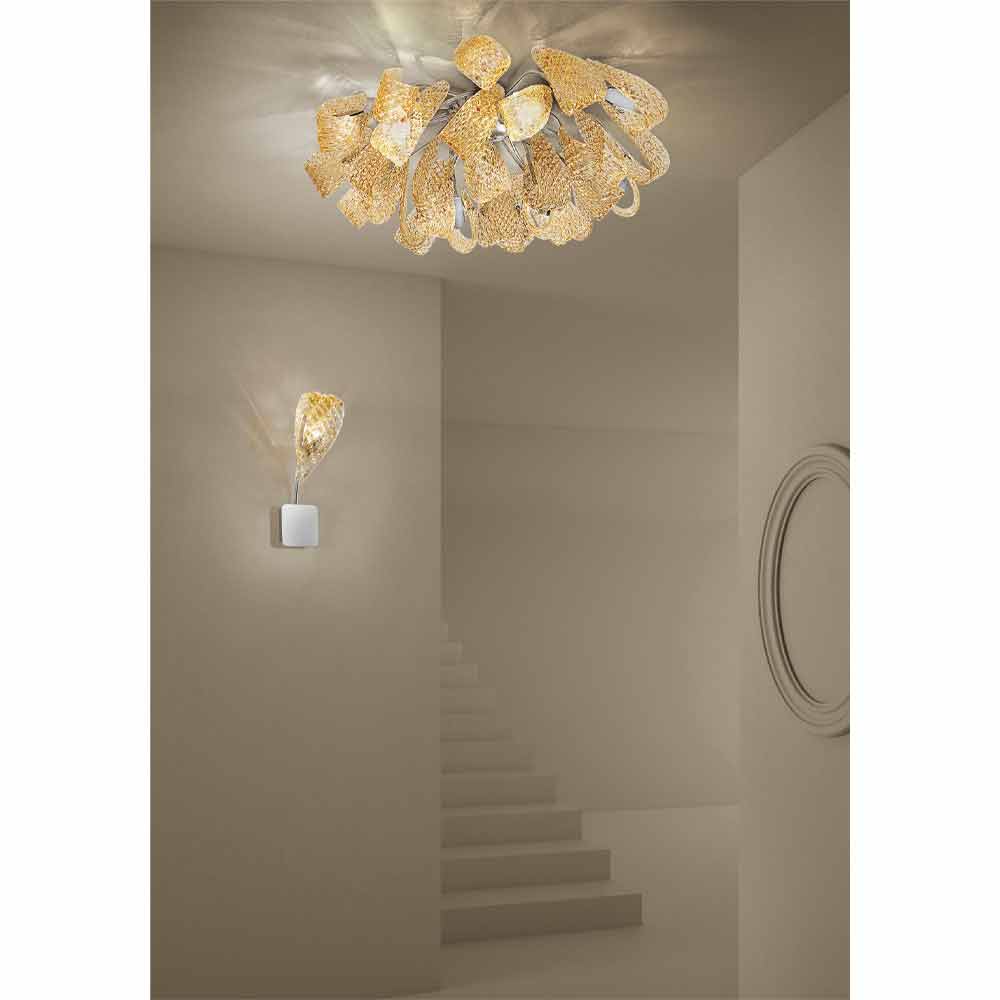 Plafondlamp in Venetië glas en verchroomd metaal, handgemaakt in Italië.