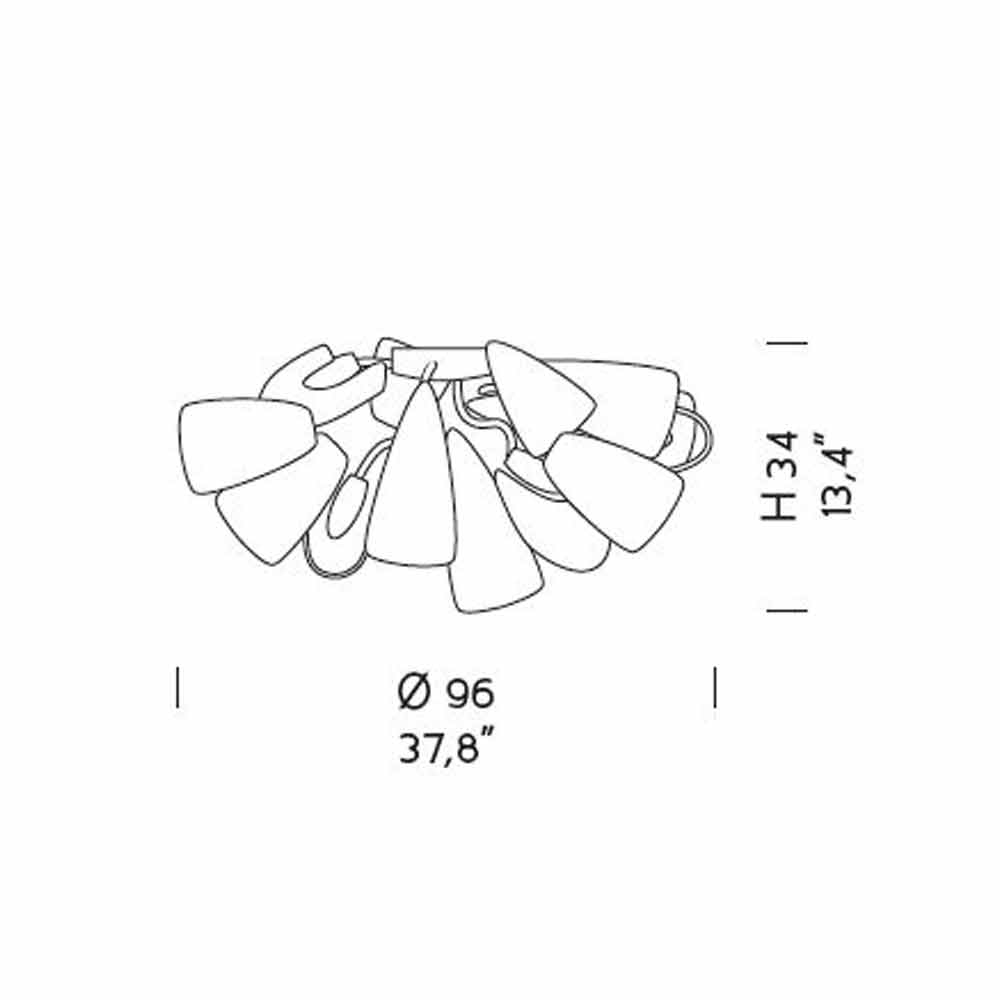 NB : de plafondlamp is verkrijgbaar in een breed scala aan verschillende kleuren en omdat ze handgemaakt is, is ze volledig aanpasbaar, ook in vorm en grootte.
