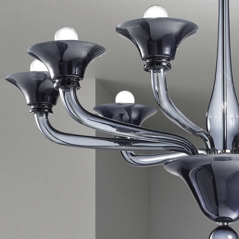Kroonluchter handgemaakt in Italië in Venetië-glas met melkwit-grijze afwerking met metalen details in gepolijste chromen afwerking . Een ongekende ontmoeting tussen historische lijnen en hedendaags design om een meubel tot leven te brengen met tijdloze charme en elegantie. Zijn esthetiek wordt gekenmerkt door een gearticuleerd volume dat dynamisch en licht wordt door de lichtgevende vibratie van de prachtige geblazen glasoppervlakken die de elegante transparante armen afwisselen met de kopjes gemaakt door het gebruik van de behuizingstechniek . Om de waarde ervan te onderstrepen, is de aandacht voor detail die blijkt uit de verchroomde metalen componenten waardoor het product zich kan aanpassen aan verschillende smaken en gebruikssituaties.