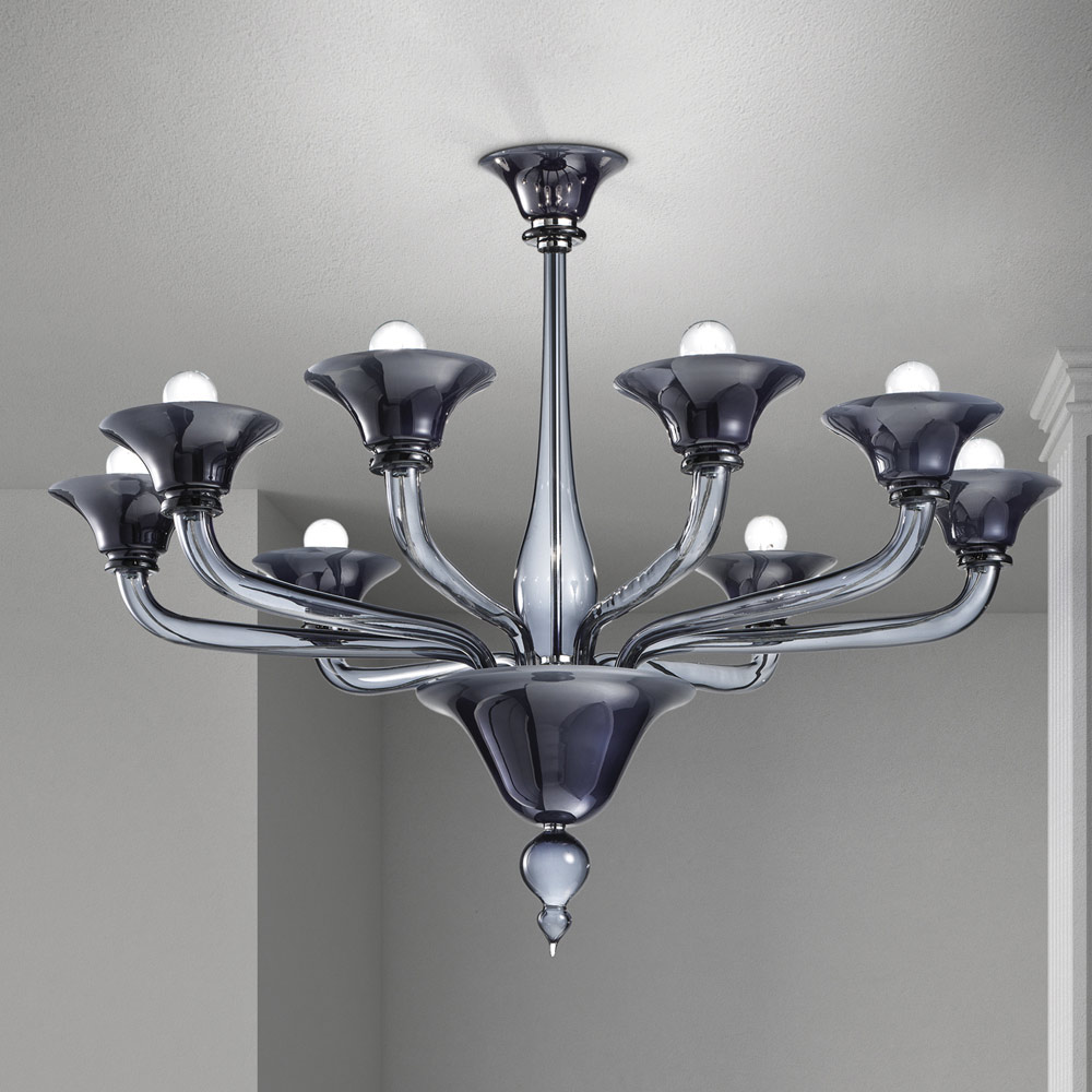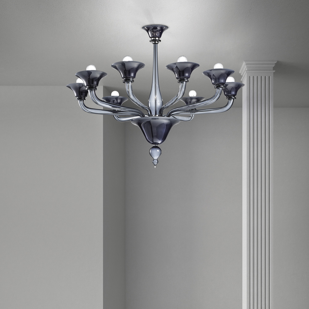 8 lichts kroonluchter in Venetië glas en metaal Gemaakt in Italië.