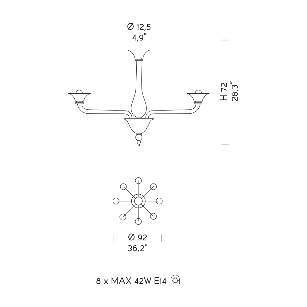 Lampen (niet inbegrepen) : 8 x MAX 42W E14