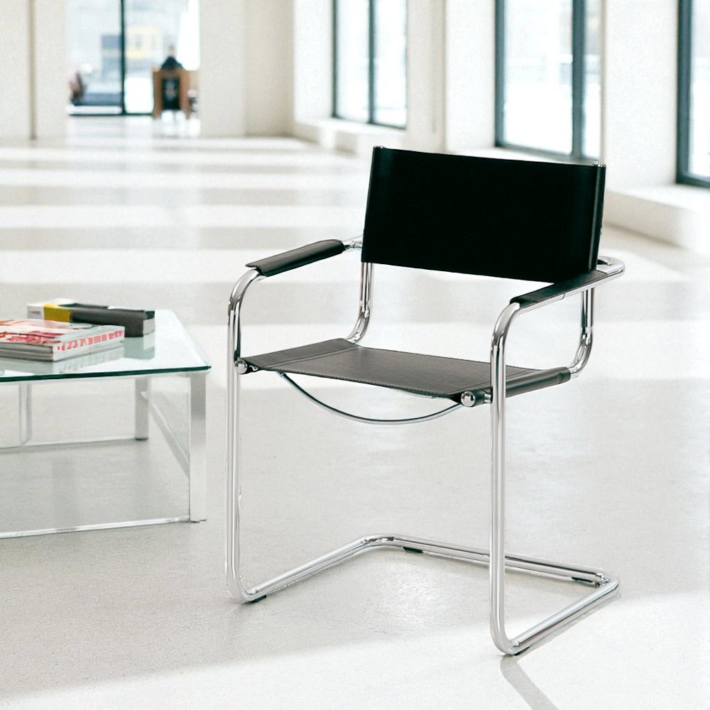 De Cirillo stoel met armleuningen is ideaal voor vergaderruimtes of conferentieruimtes omdat deze stoel al deze eigenschappen belichaamt. Hij heeft een verchroomd metalen frame en een zitting, rugleuning en armleuningen van zwart kunstleer.