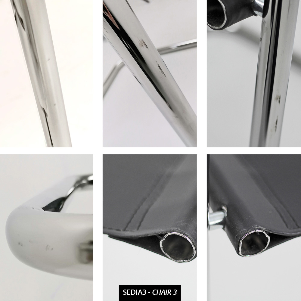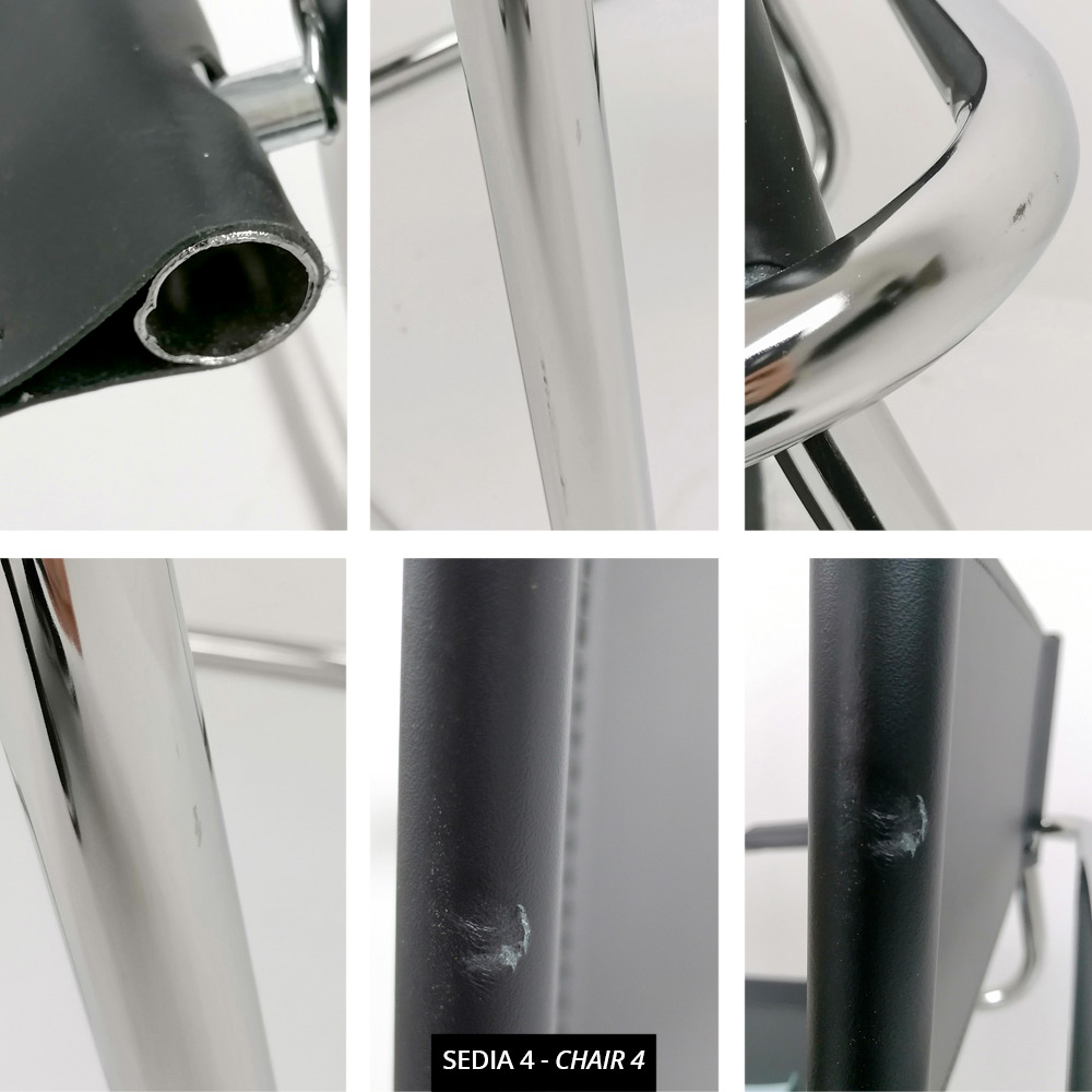 Moderne vergader- of conferentiestoel in verchroomd metaal en zwart kunstleder.