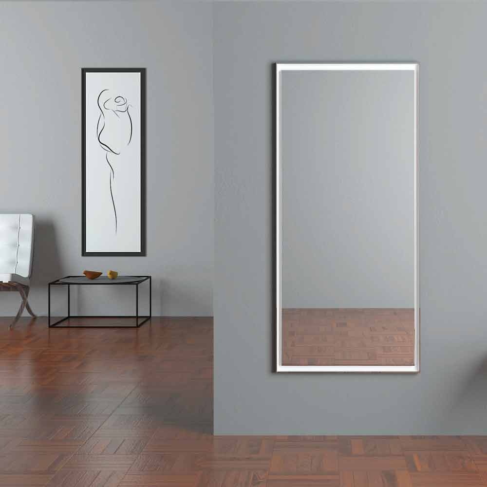 Moderne rechthoekige wandspiegel met omtrekverlichting Made in Italy.