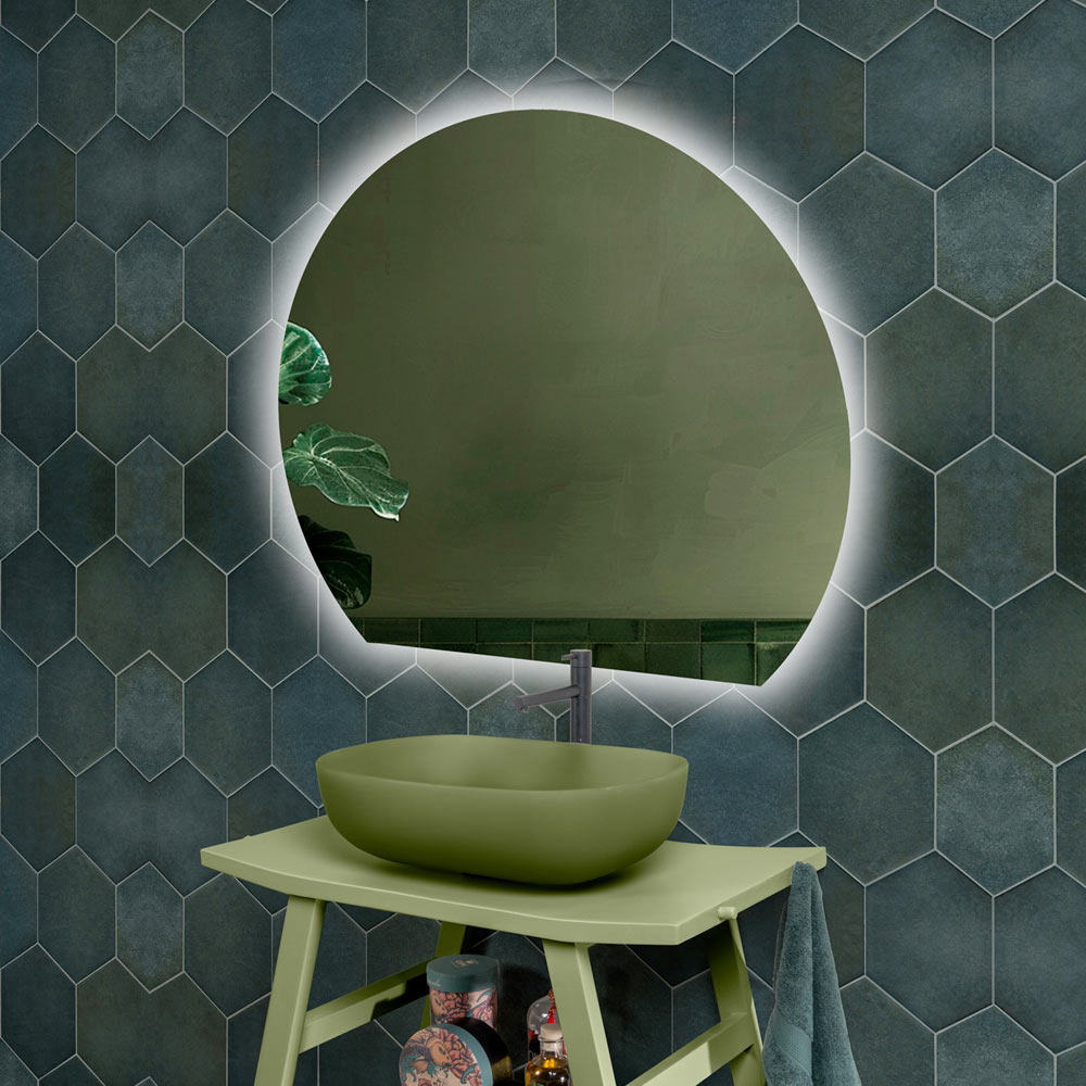 De geïntegreerde ledverlichting , gelijkmatig verdeeld over de omtrek, creëert een zacht effect dat de zuiverheid van de ronde vorm versterkt en bijdraagt aan een gastvrije en verfijnde sfeer. Perfect voor persoonlijke verzorging, biedt het functionele en tegelijkertijd sfeervolle verlichting.