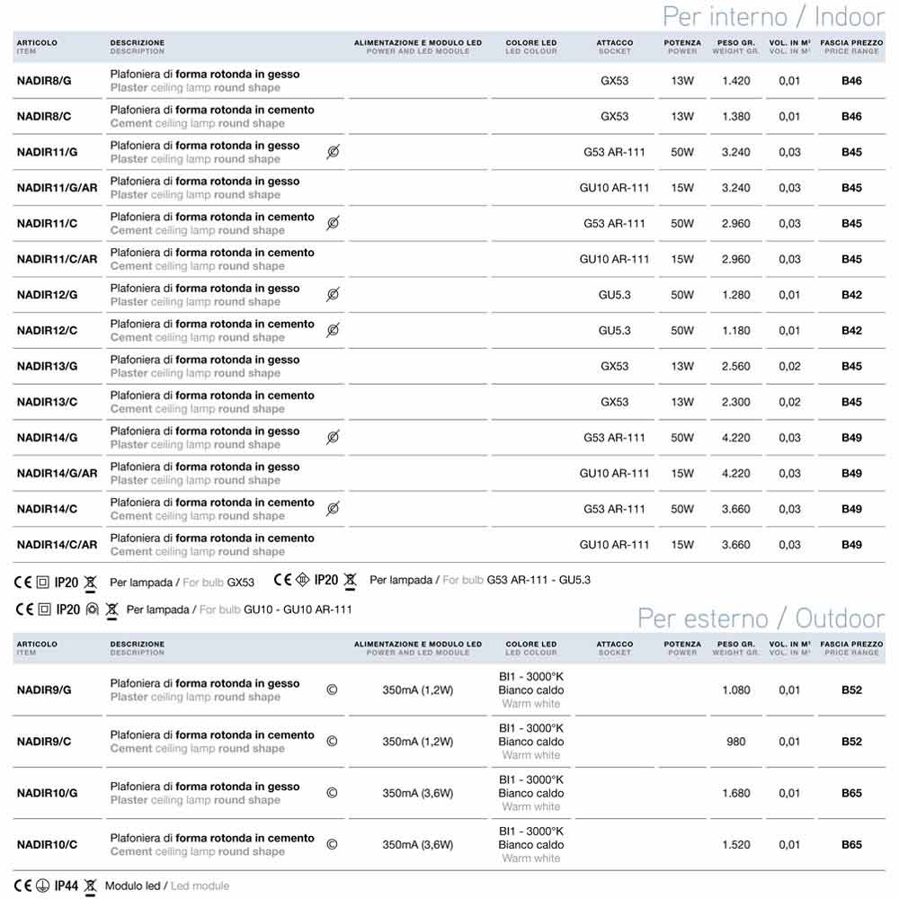 Design buiten LED plafondlamp Nadir 9 van Aldo Bernardi , ronde vorm, verkrijgbaar in beton of gips uitvoering.