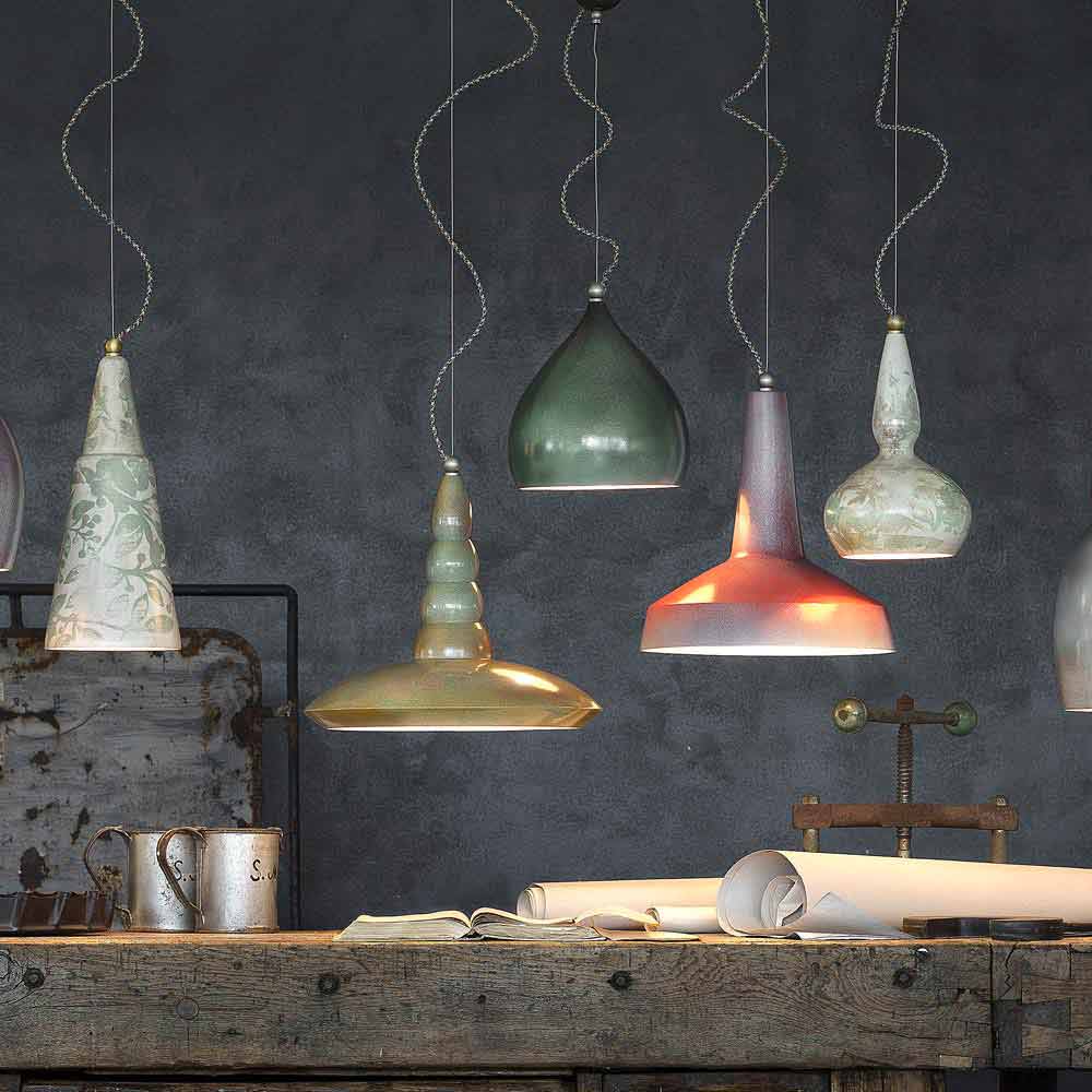 Lineaire vormen en afmetingen ontworpen om karakter te geven aan de meest minimale meubels, maar die zelfs kunnen worden geïntegreerd met de meest verfijnde meubels, en die de industriële esthetiek van de twintigste eeuw kunnen oproepen. De oppervlakken beschrijven een zorgvuldige studie van kleur en kleuren. De geometrieën kunnen worden geherinterpreteerd door oppervlakken die zijn bedekt met zachte glazuren met een geschuurd effect en elegante tinten, door het gebruik van glazuren die het oppervlak een tastbaar en visueel levend aspect kunnen geven, en voor retrokleuren, of door gestileerde bloemen in perfecte Shabby-stijl te gebruiken die zich op de oppervlakken verspreiden en een fascinerend fresco-effect creëren, deze damastafwerking wordt verkregen door chromatische details en kleine technische details in de decoratie, waardoor zelfs de vlakke oppervlakken worden verbeterd.