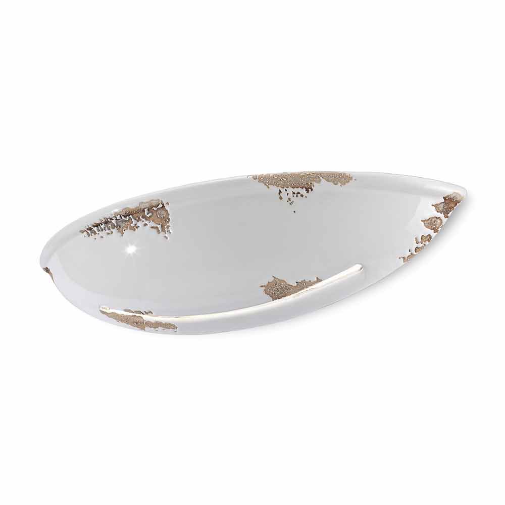 De eigenaardigheid van deze lamp ligt in de verwerking van de externe afwerking, zo gedecoreerd alsof de tijd zijn pad had gemarkeerd. De reproductie van de erosie van de tijd in combinatie met de glanzende oppervlakken geven die extra waarde aan dit applique.