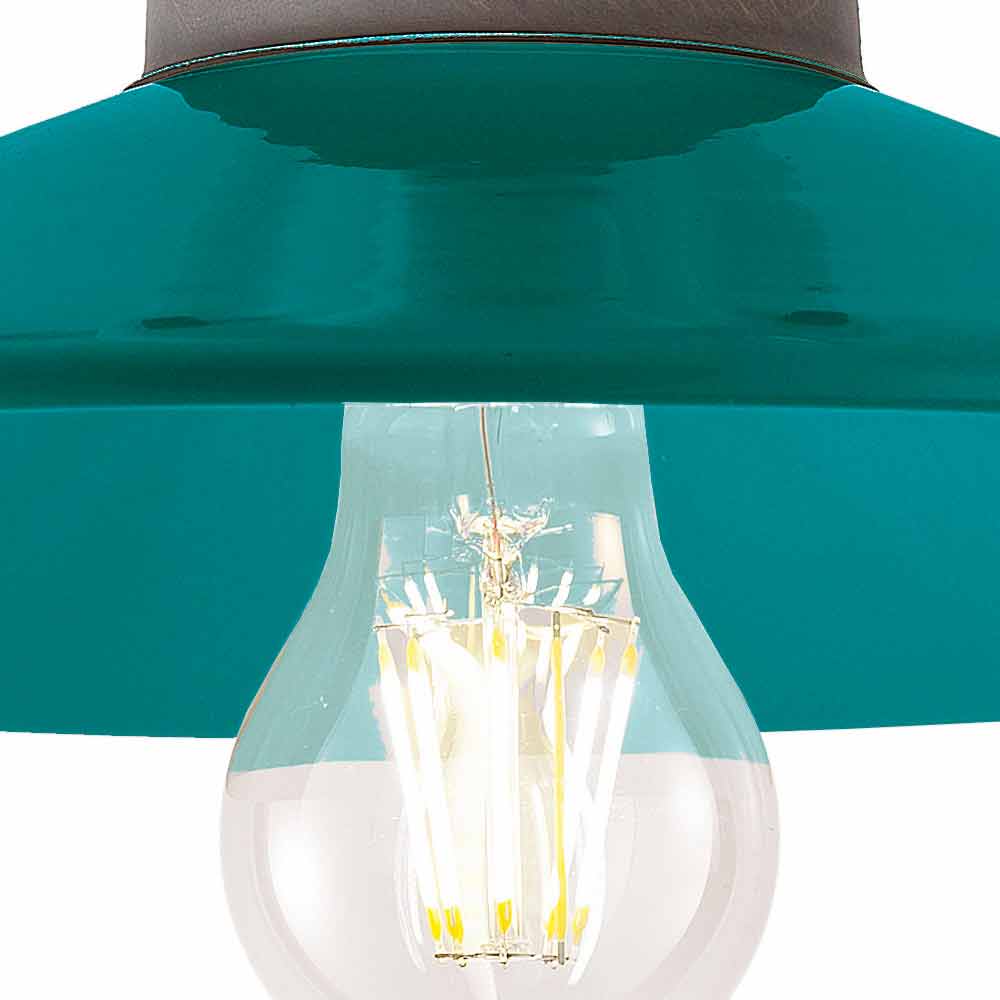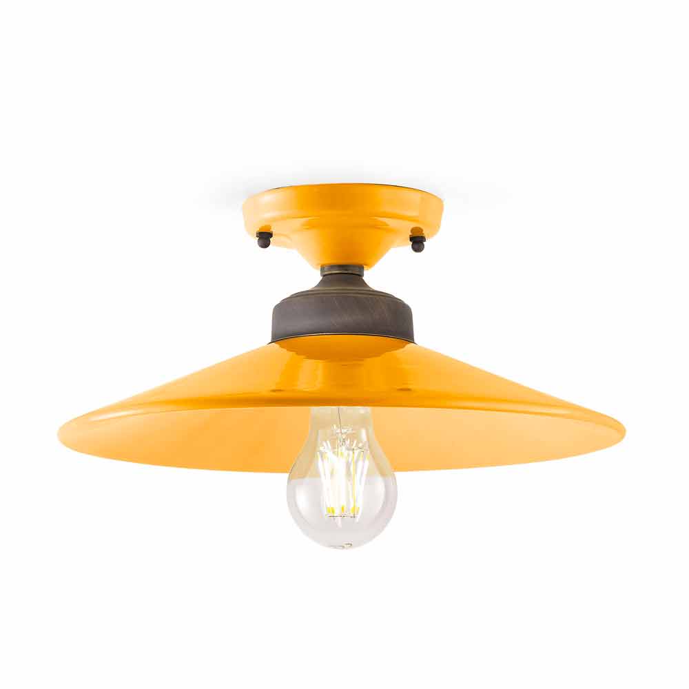 Deze prachtige plafondlamp bestaat uit een verouderde messing structuur met een diffuser van glanzend gekleurd keramiek, verkrijgbaar in verschillende kleuren.