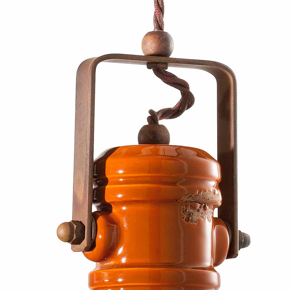 Deze prachtige lamp bestaat uit een ijzeren structuur met een diffuser van glanzend keramiek, verkrijgbaar in verschillende kleuren.