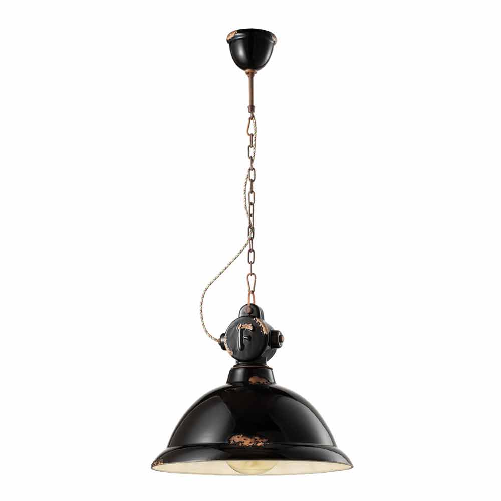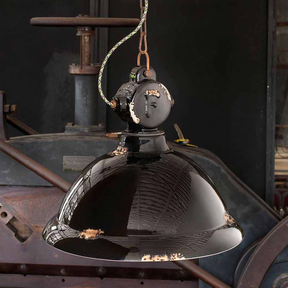 Angela is een fantastische ophanging, met een belvorm en vintage - industriële stijl, handgemaakt door bekwame ambachtslieden in Italië.
