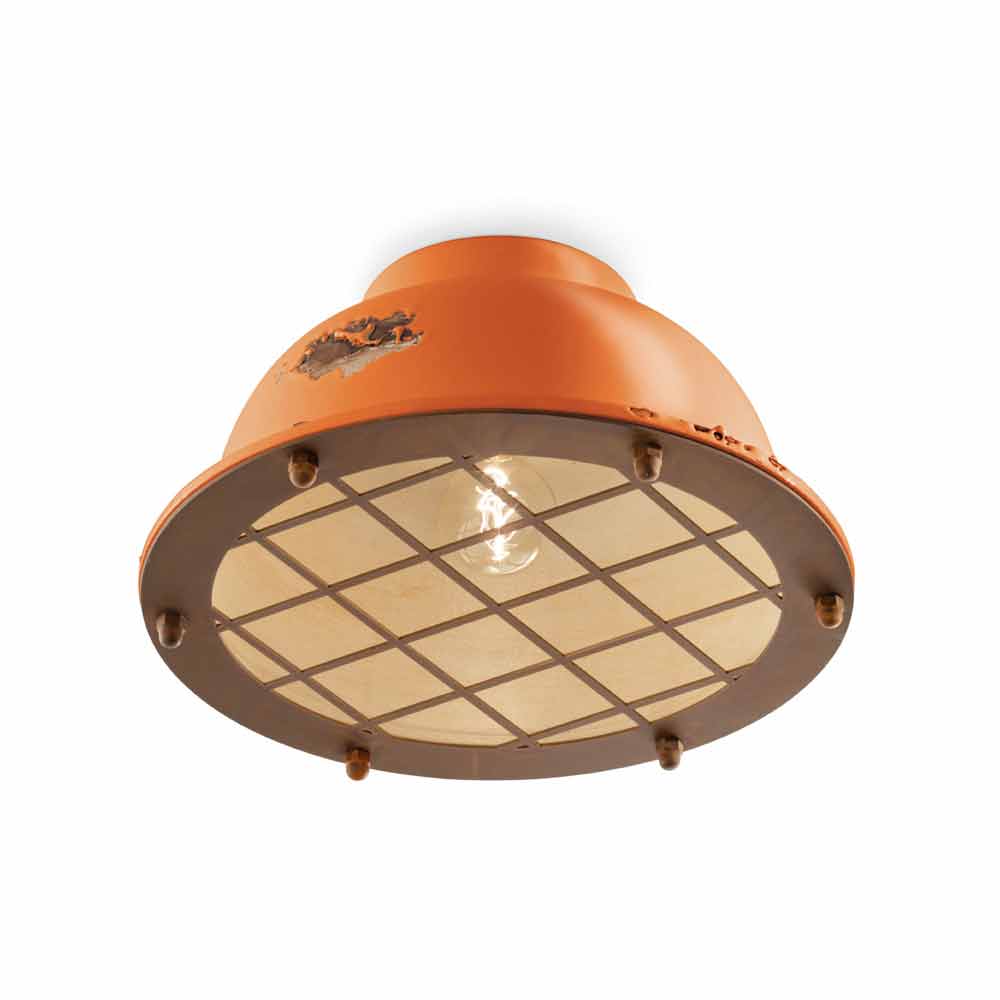 Een andere bijzonderheid van deze fantastische lamp zit in het originele ontwerp, te beginnen met de roosterafdekking en de bevestigingsmoeren, beide in de corten-afwerking. Deze kleine details maken van deze plafondlamp in nautische stijl een onnavolgbare lamp.
