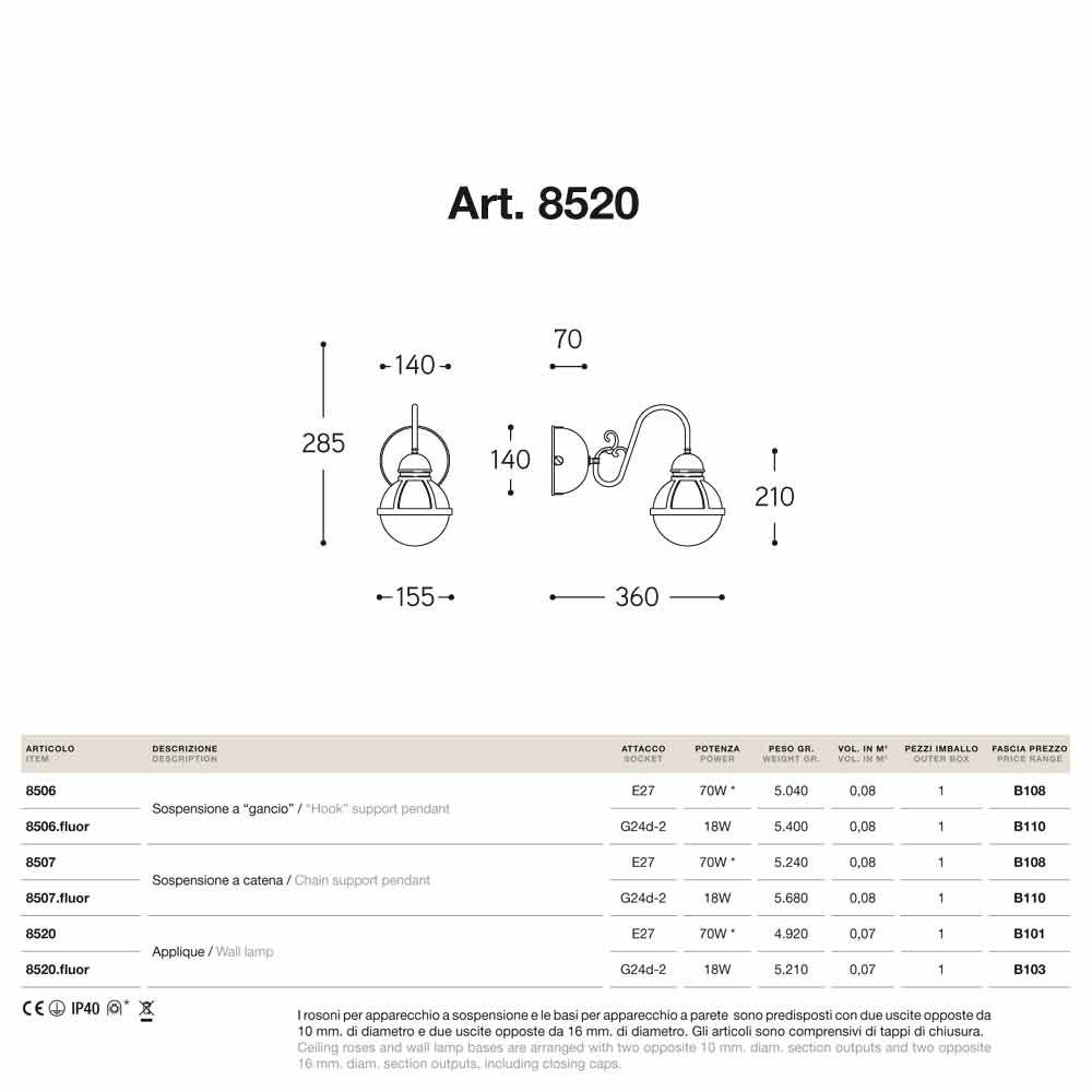 - toestel met fitting voor standaard gloeilamp E27 - 70 W