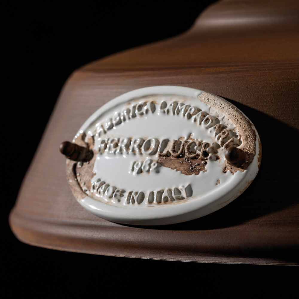 Kenmerkend voor uniciteit is de verwerking en afwerking van de keramische onderdelen, zo gedecoreerd alsof de tijd zijn pad had gemarkeerd. De reproductie van de erosie van de tijd in combinatie met de glanzende oppervlakken geven die extra waarde aan deze ophanging.