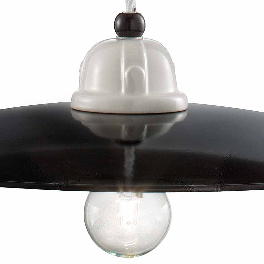 Lamp gemaakt van glanzend zwart keramiek, wat betreft de externe afwerking van de diffuser, terwijl de structuur, het frame en de draad een glanzende witte afwerking hebben. Melissa is verkrijgbaar in verschillende maten.