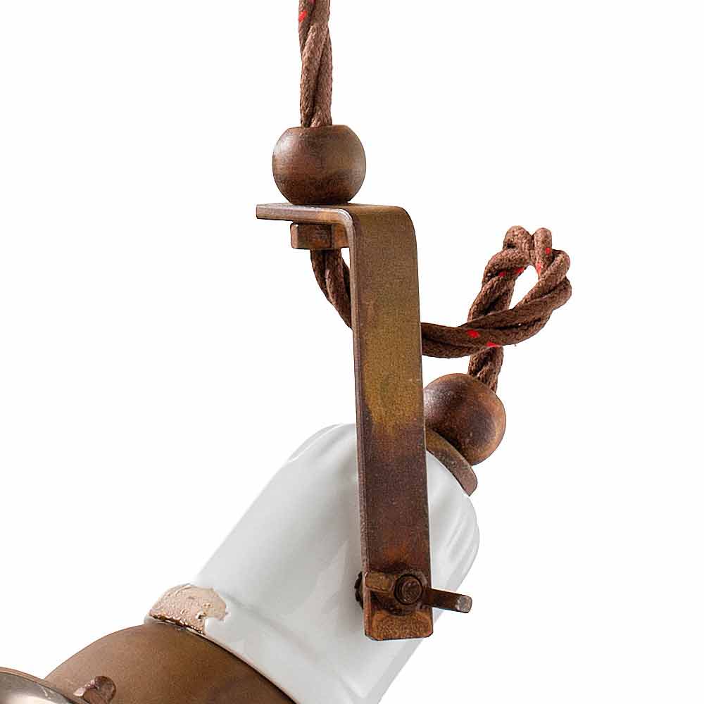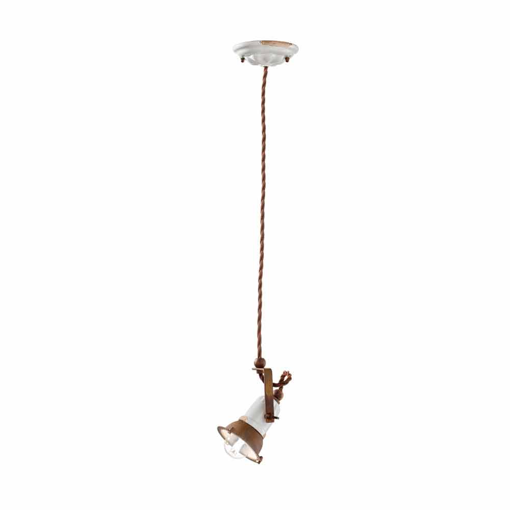 Richtbaar licht, keramiek met vintage afwerking in perfecte harmonie met geoxideerd metaal: een ophanging die uniek is in zijn stijl, met een antieke smaak, perfect voor de meest verfijnde omgevingen.