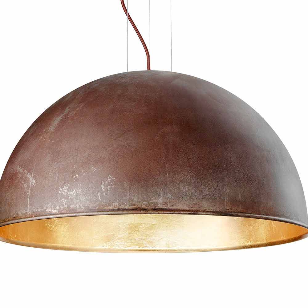 De grafiek gewaagde slagen en een perfecte halve bol kenmerken deze collectie lampen, die is ontworpen als een eerbetoon aan de astronomische revolutie. Het contrast tussen de buitenzijde van koper of ijzer en het inwendige van bladgoud, zilver of koper blad, krijgt dit product een esthetische waarde van groot visueel effect. Verkrijgbaar met externe koper of ijzer 30,40,60 cm in diameter en met externe ijzer 80 cm in diameter.