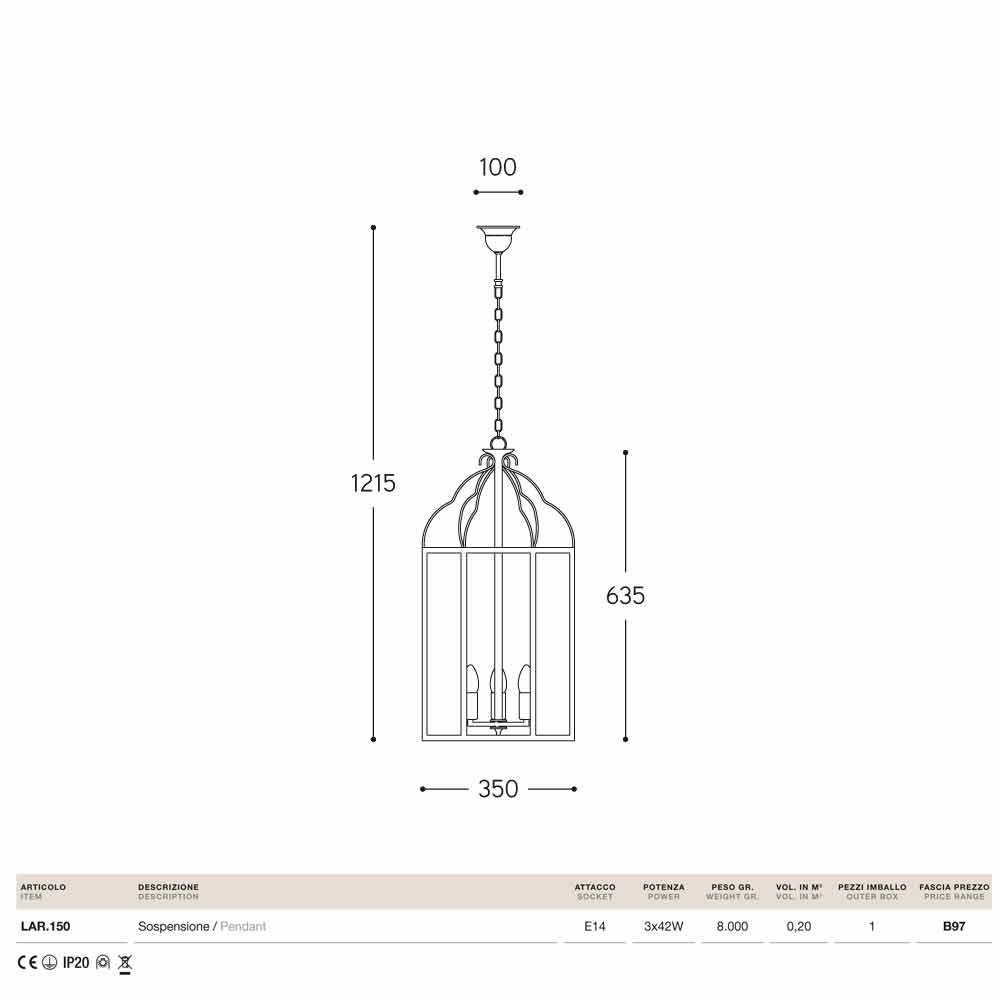 Lampontwerp suspensie in antieke ijzeren Jean Il Fanale