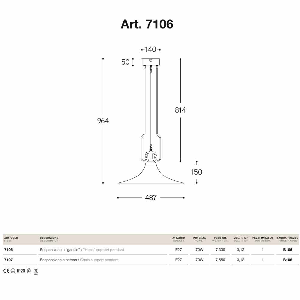 Lampontwerp suspensie in antieke ijzeren Jean Il Fanale