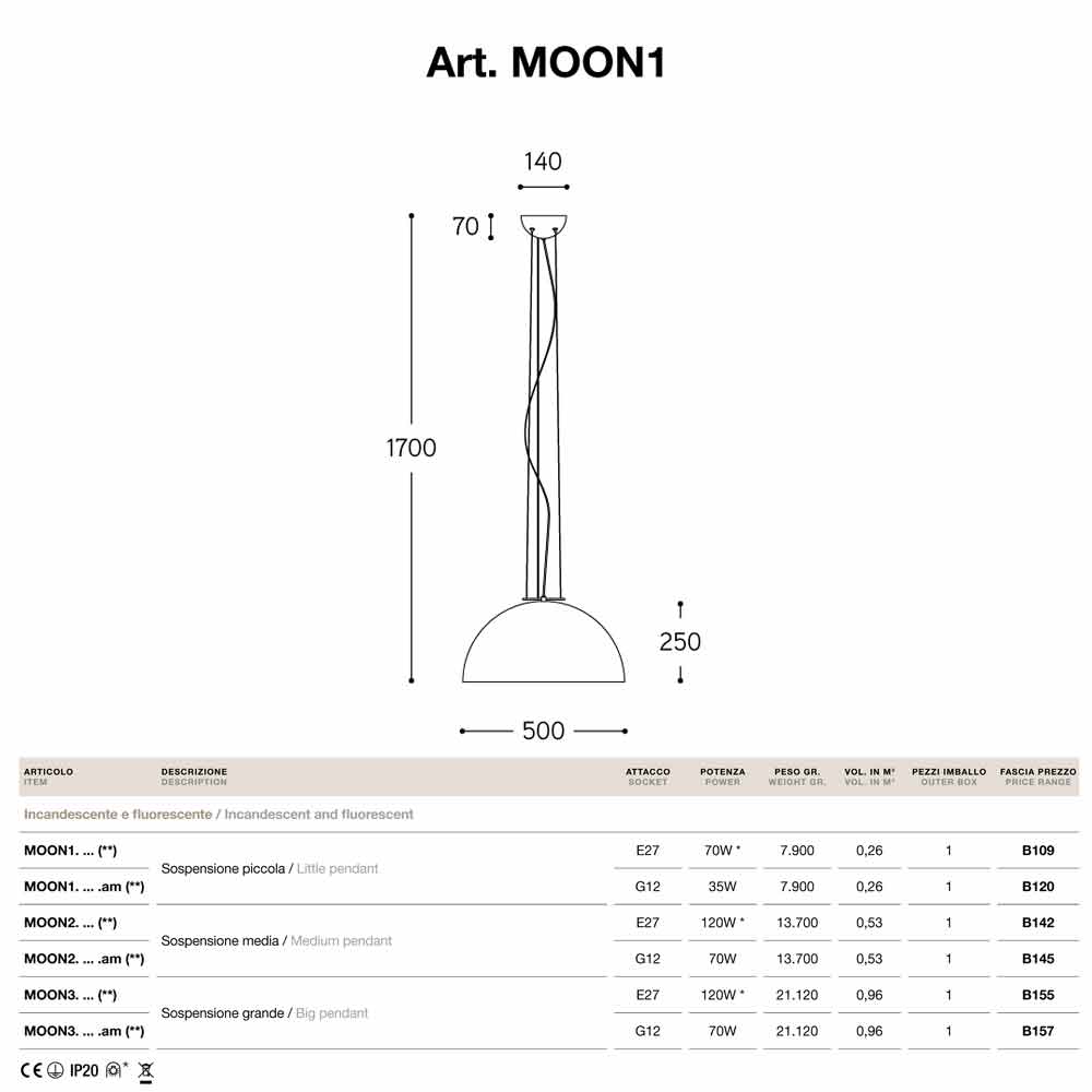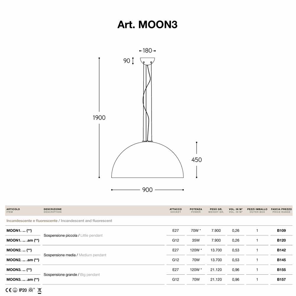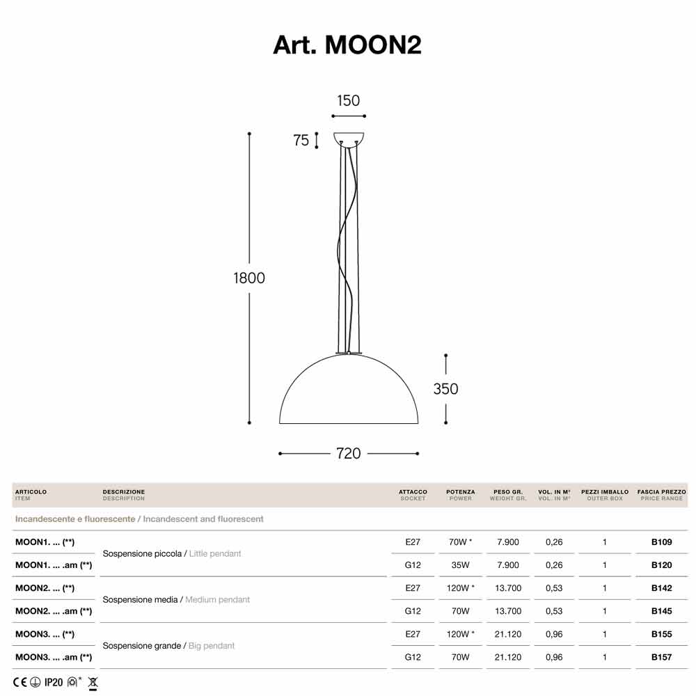 Moderne design stalen hanglamp Moonlight van Aldo Bernardi, IP 20.