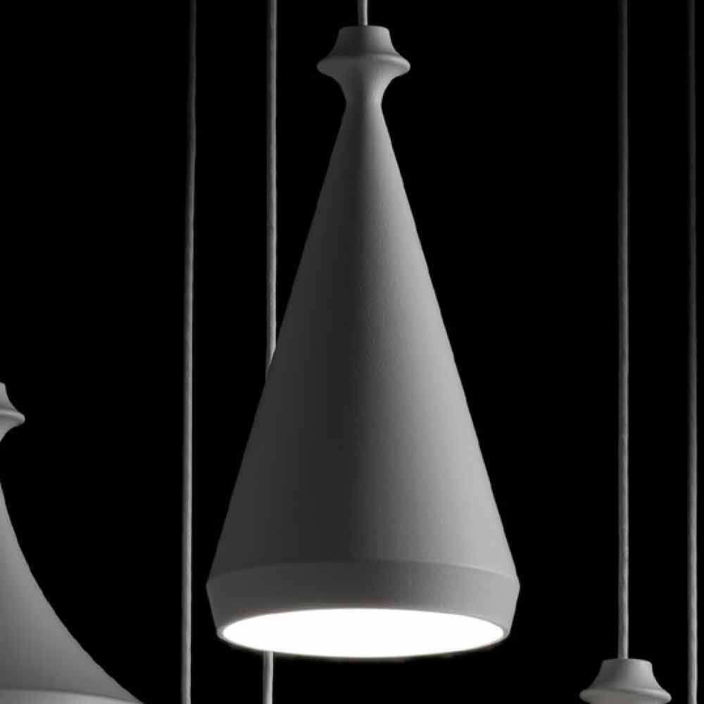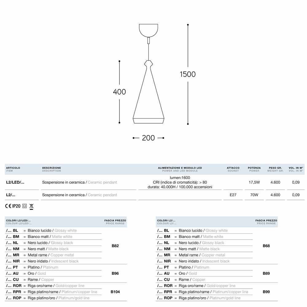 I Lustri is verkrijgbaar met verschillende afwerkingen en met fitting voor standaard E27 gloeilamp of met LED-licht.