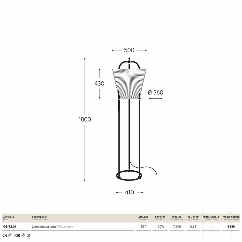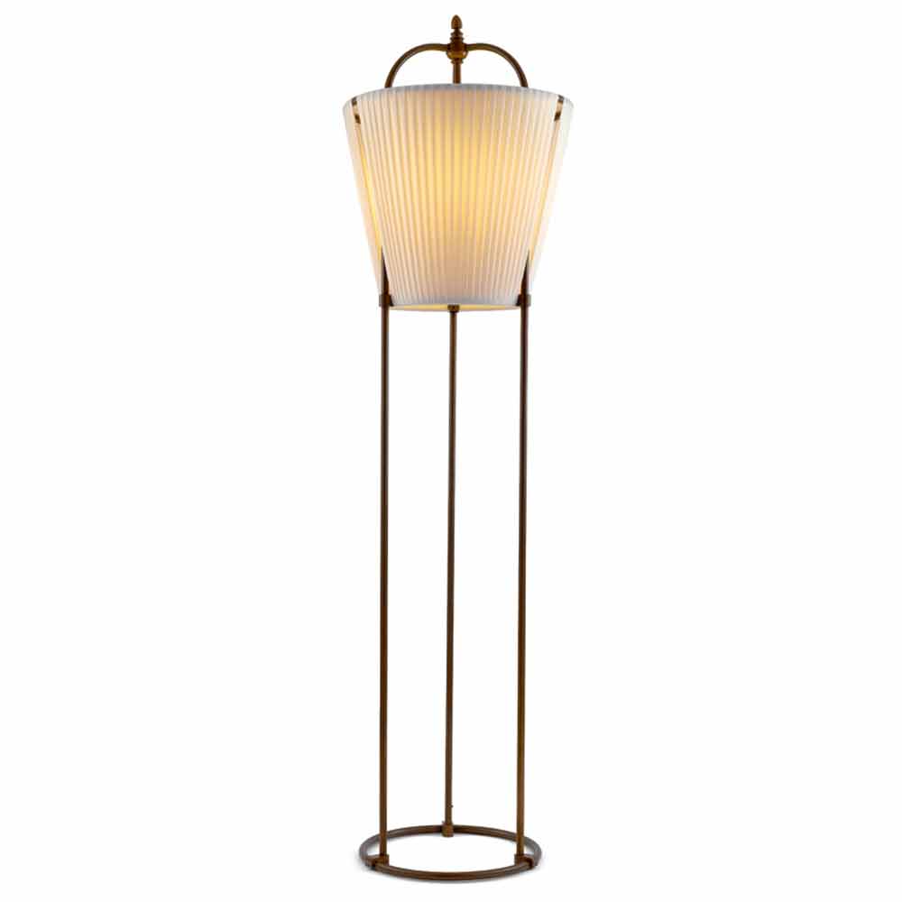 Design vloerlamp Tenarunga van Aldo Bernardi, gemaakt van verouderd messing en stof.