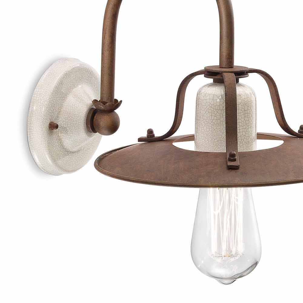 Wandlamp in industriële stijl van metaal en keramiek van Ferroluce