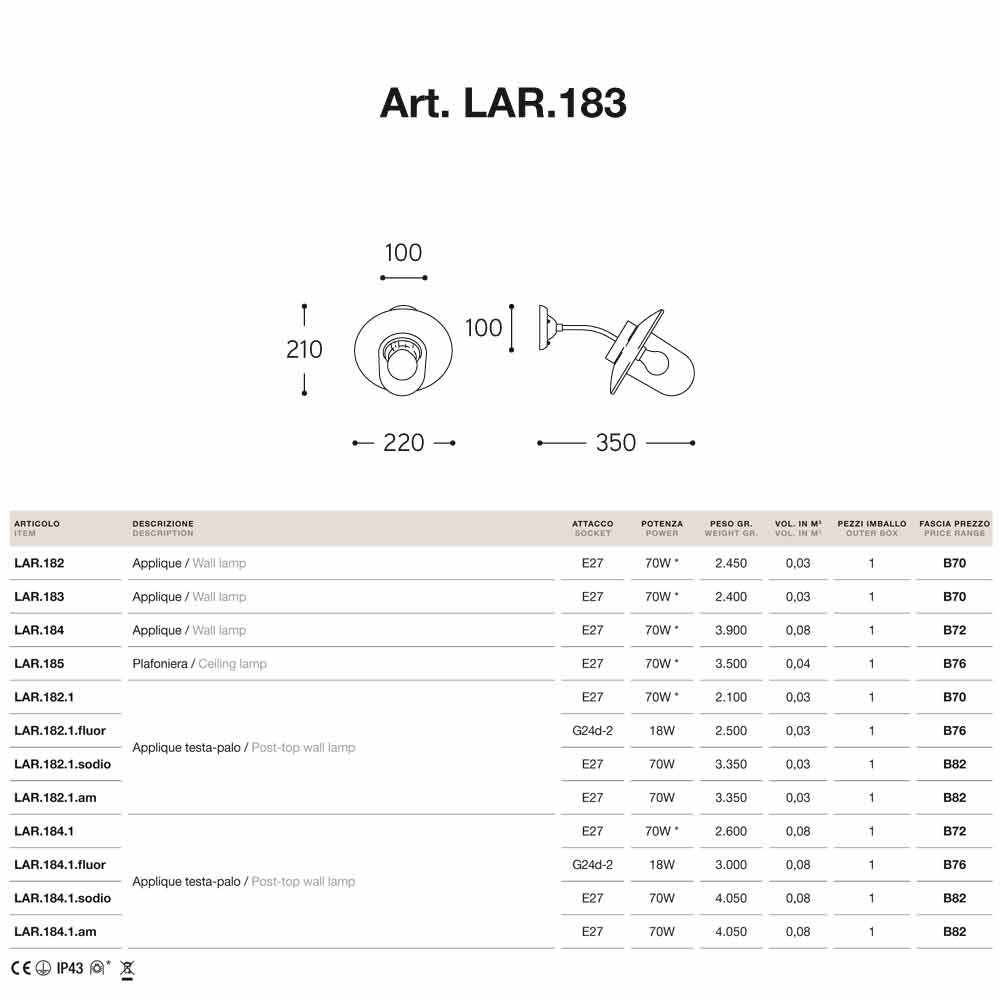 Moderne design wandlamp Nabucco van Aldo Bernardi, gemaakt van messing, koper en glas.