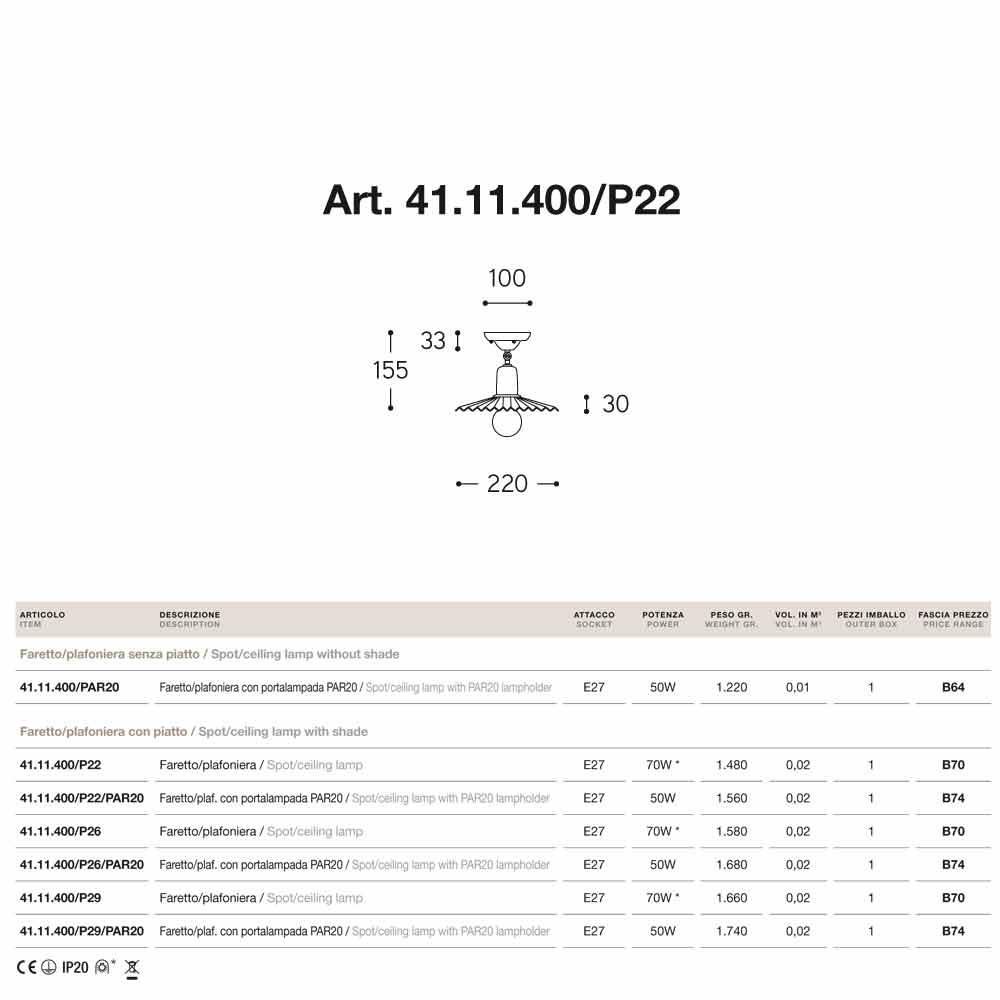Moderne plafondspot gemaakt van verouderd koper Civetta van Aldo Bernardi.