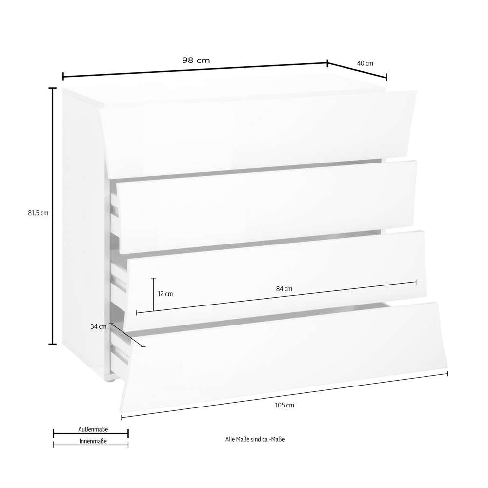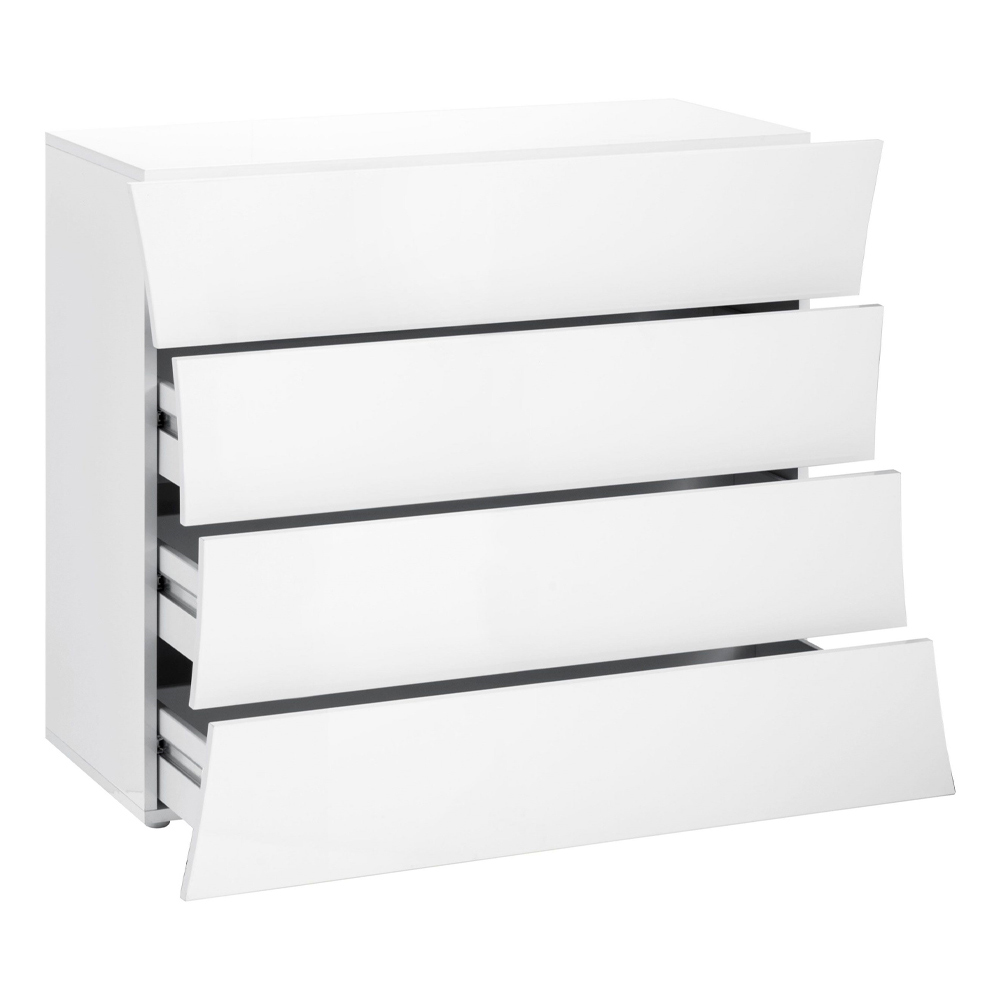 Gewelfde witte houten ladekast met 4 lades gemaakt in Italië.